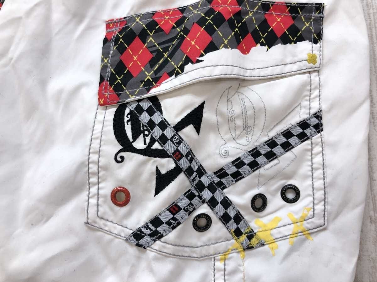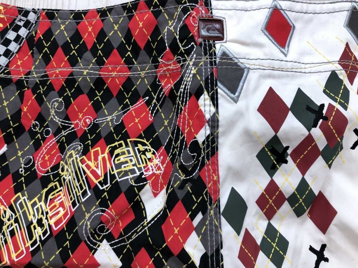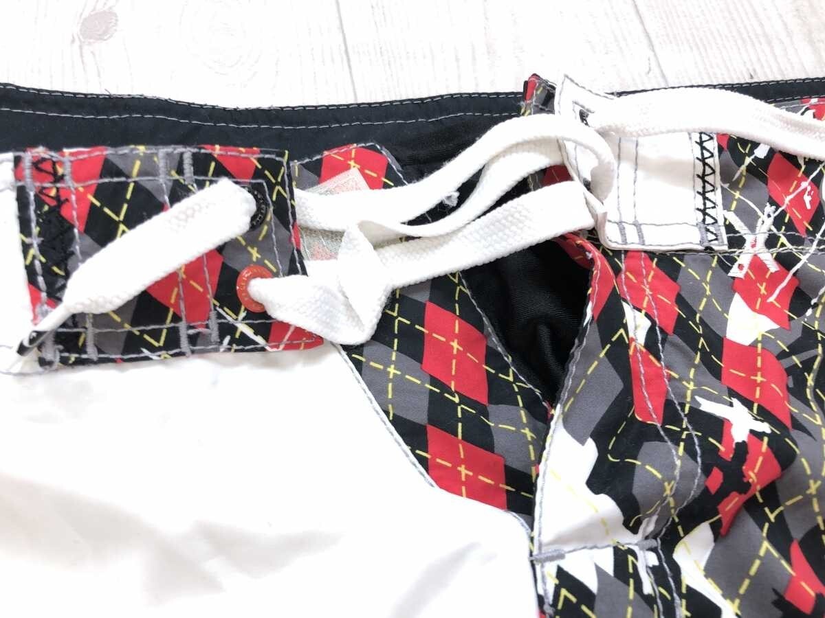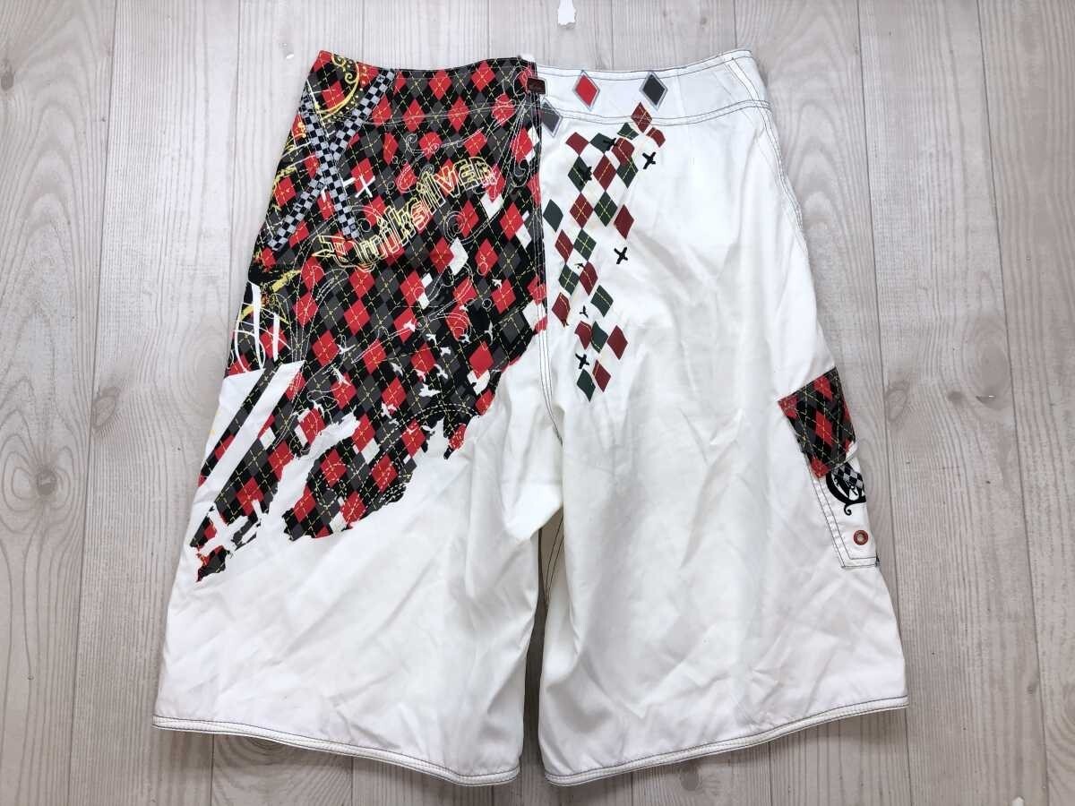 クイックシルバー Quiksilver ゴス パンク ストリート ハーフ ショートスイムパンツ ボトムス メンズ メッシュインナーパンツ付 30 白黒赤です。