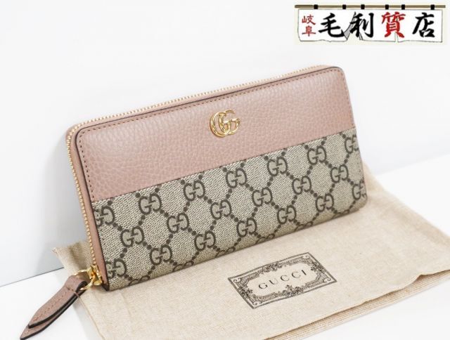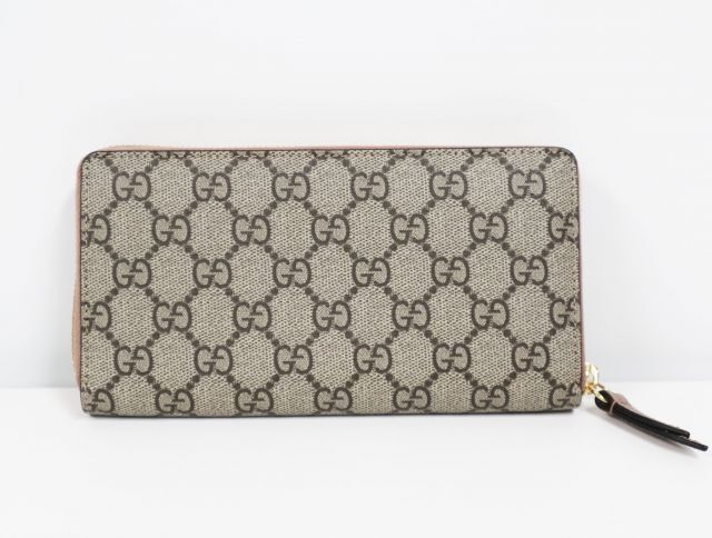 グッチ GUCCI GGスプリーム 456117 ベージュ ピンク GG ゴールド ラウンドファスナー 長財布 レディース 美品 財布 |