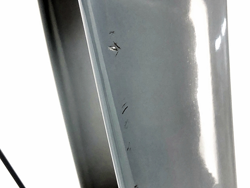フレーム、その他外観:BB前方ダウンチューブ根元辺りにチェーン落ちキズがあります。左右チェーンステーの根元BB付近の裏にスタンド取付キズがあります。右チェーンステー、右フロントフォーク、クランク、リアディレイラー、STIレバー、シートポスト、バーテープにキズ、ホイール、サドルにスレキズがあります。