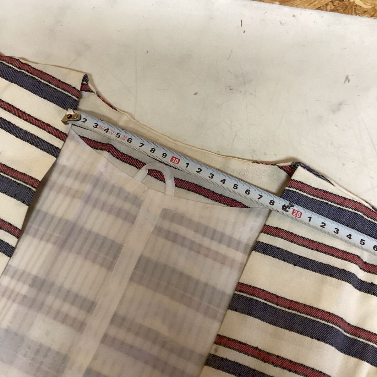和装 着物 羽織 道中着 ストライプ カジュアル 白 赤系 青 (ほ-9Y)