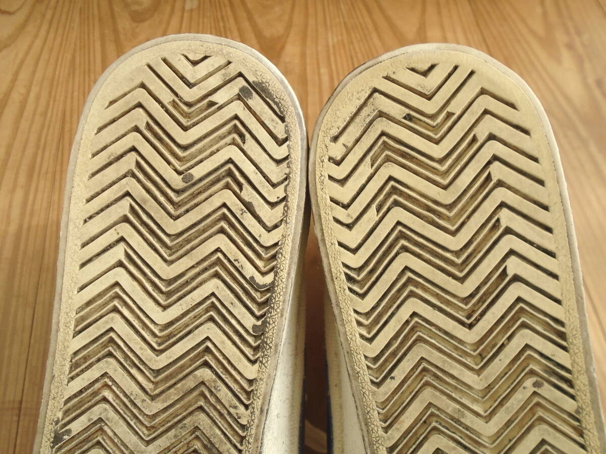 ナイキのブレザー。 1981年製造品。 白のキャンバス生地。 表記サイズはUSサイズの10.5。 約28.5cmのサイズになります。 実寸で アウトソール 約29cm程 アウトソール最大幅 約9cm程 あります。 本箱なし。 細かな汚れあります。 ソールの減り少なくコンディション良好美品。 履き口周りのビニール生地にダメージなし。 韓国製。 希少品。 | |||