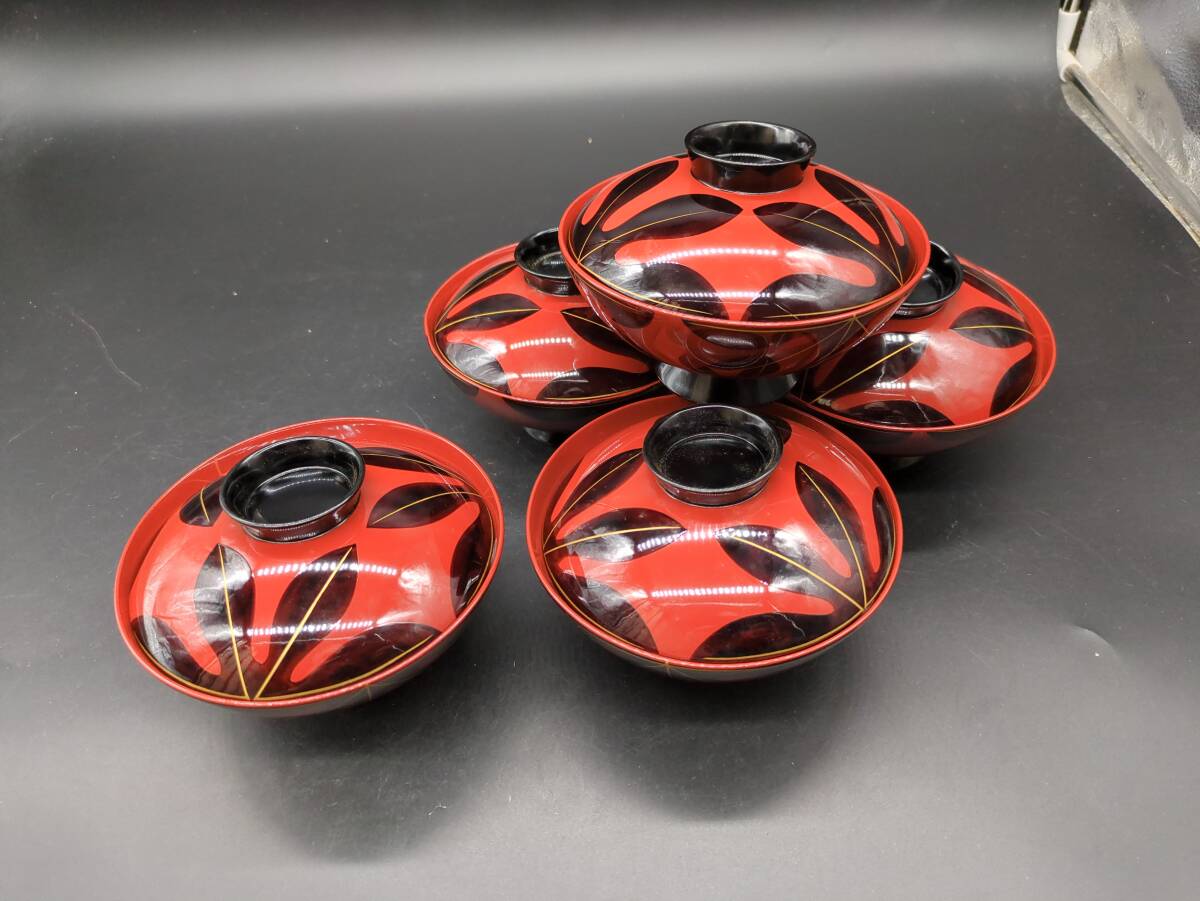 輪島塗 吸物椀 雑煮椀 蓋付き椀5客 木製 漆器◇汁椀 和食器 店左上5