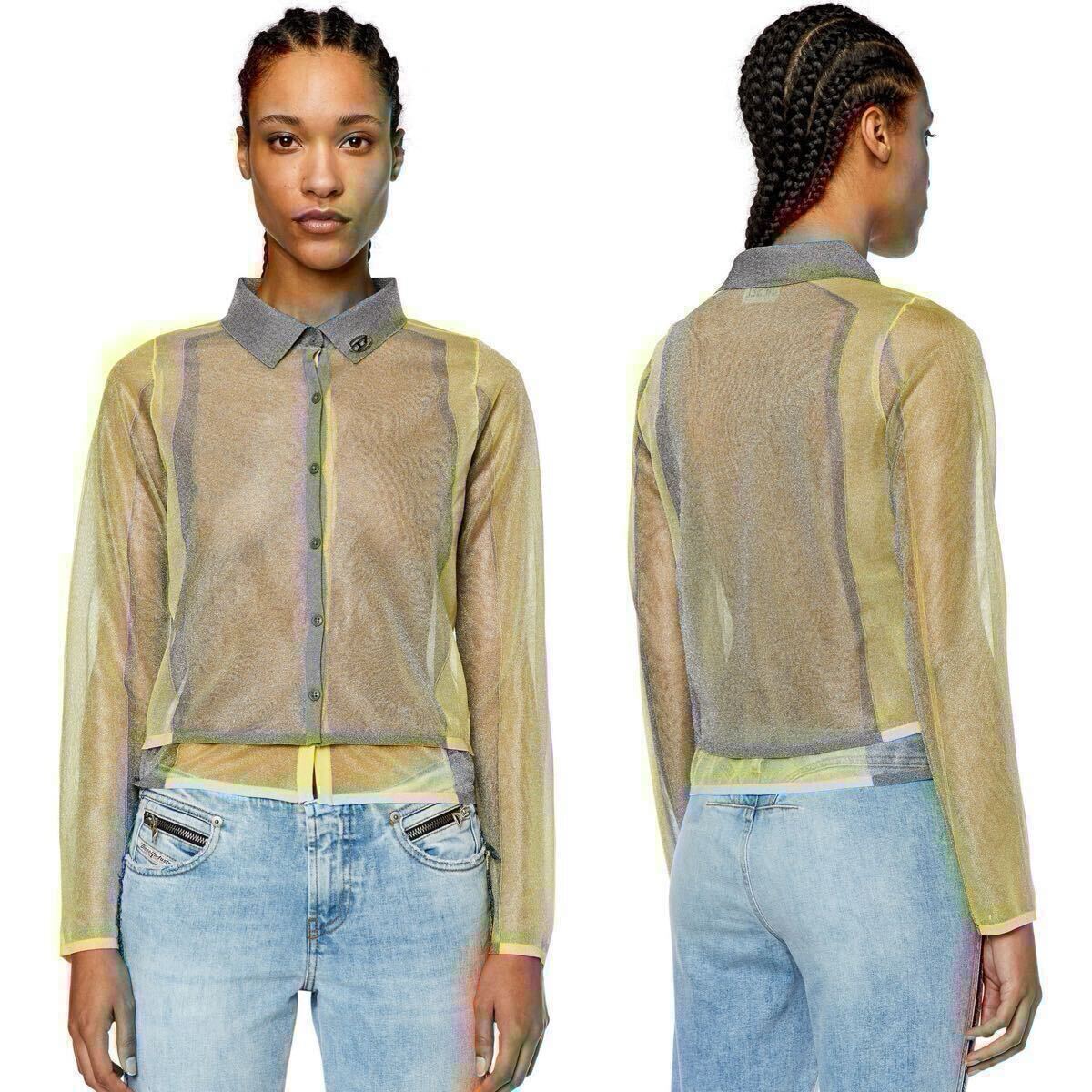 繊細なグリッターが高級感を感じさせるシアー素材のレイヤードニットシャツ。2枚の素材を重ねて動きのあるスタイルが実現したこだわりのニットはいつものデニムスタイルを女性らしくクラスアップしてくれます。カーディガンとしても万能だからロングシーズンお使い頂けます。襟にほどこされたDロゴのプレートもDIESELらしいアクセントに。