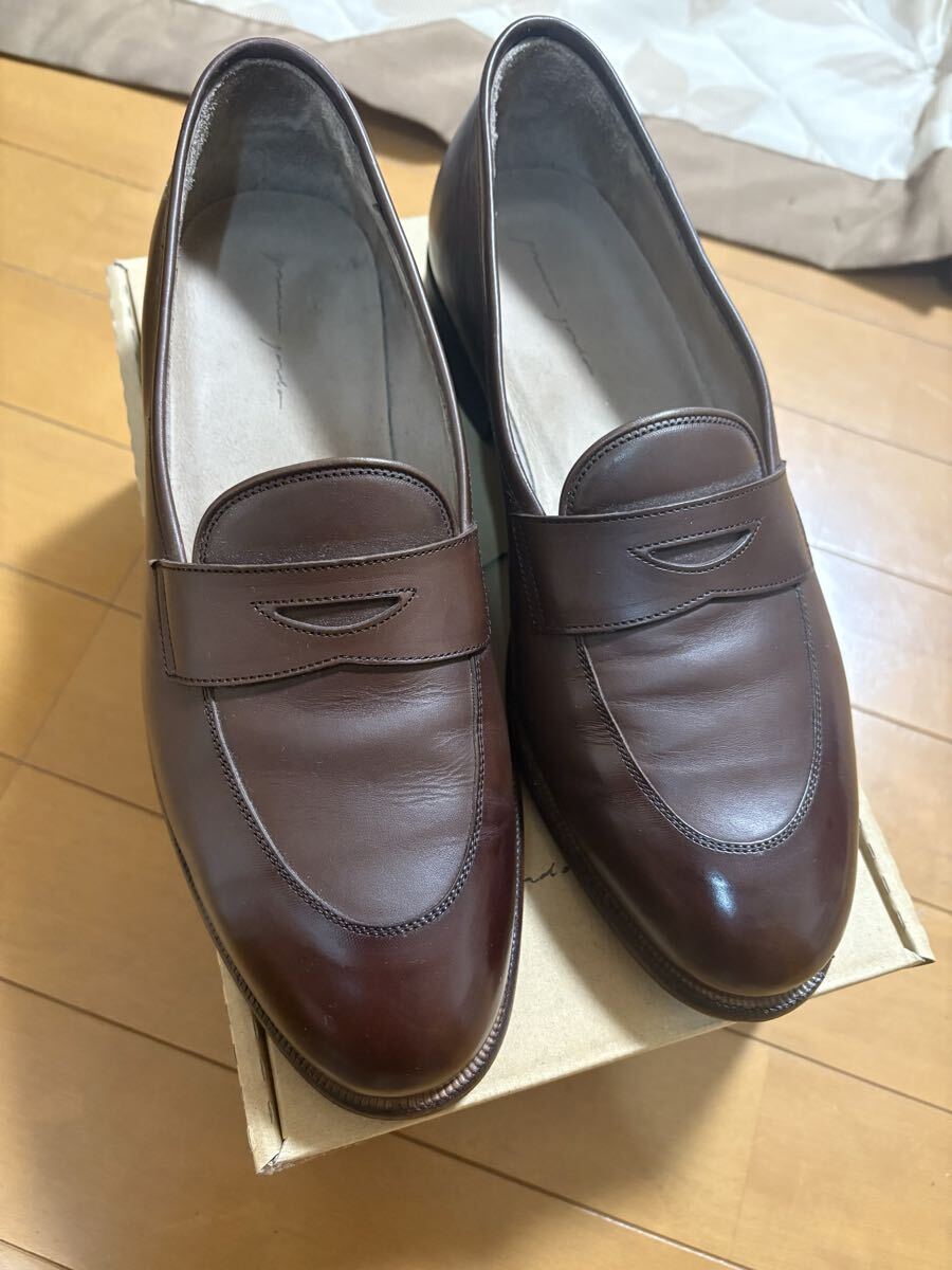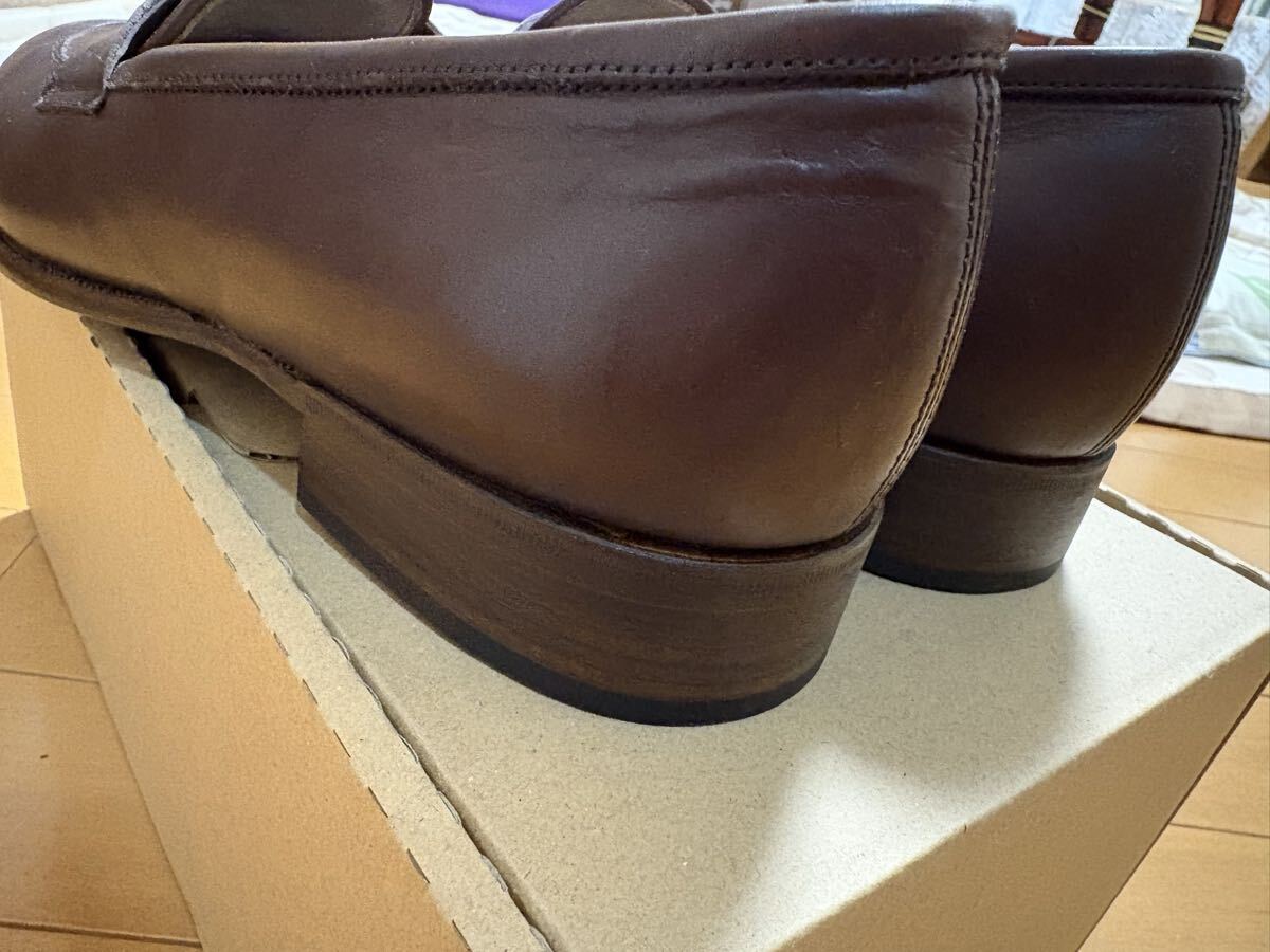 室内で試着程度ですが神経質な方の入札はご遠慮ください。未使用でほぼ新品ですが皮の独特なシワなどあります。欲しかった方はお買い得と思います。