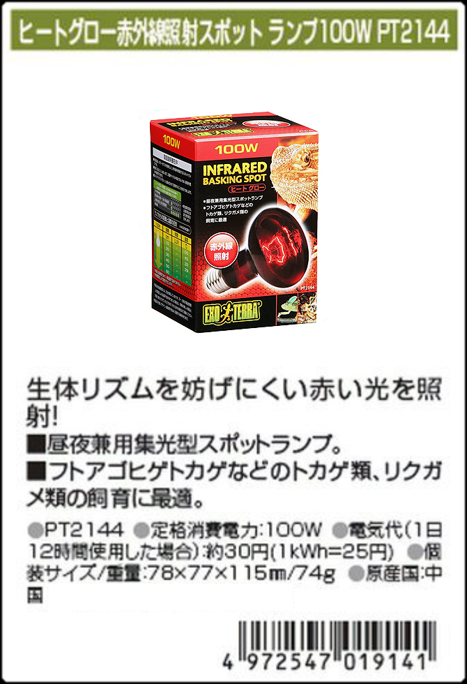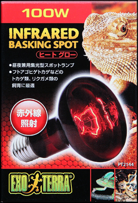 ○ ヒートグロー赤外線照射スポットランプ100W エキゾテラ 爬虫類用保温球/レフ球 消費税0円 新品価格 ○