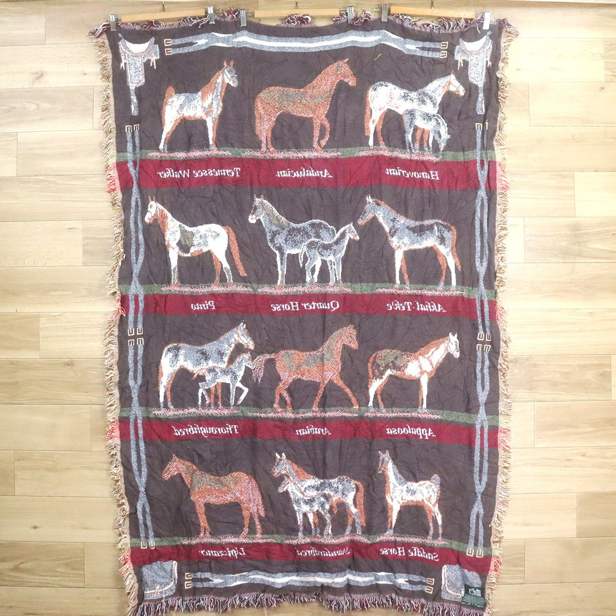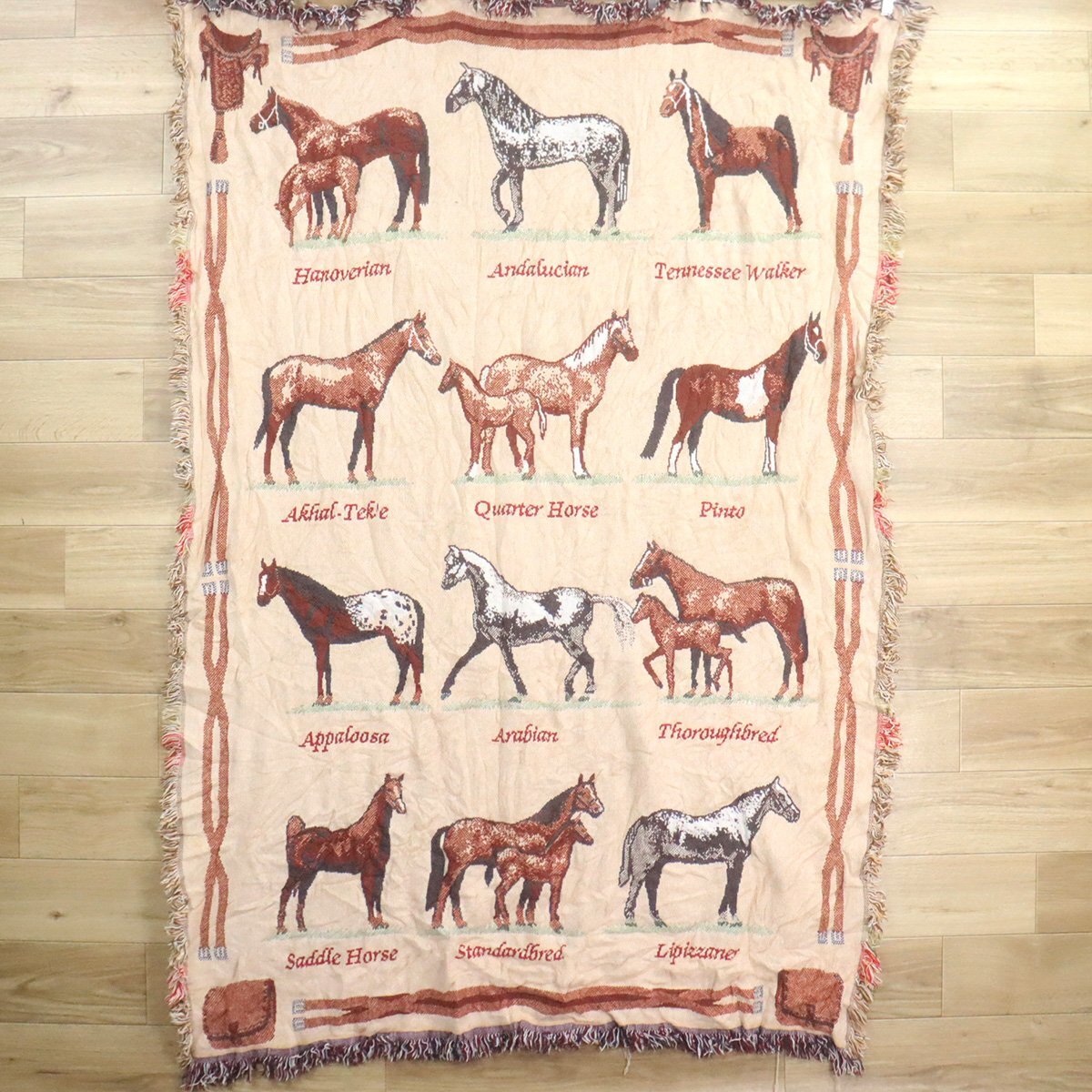 !3-9 O/O9.22-5 USA製 馬 ホース 動物柄 アニマル柄 ラグ マット カーペット ブランケット タペストリー ソファーカバー 雑貨