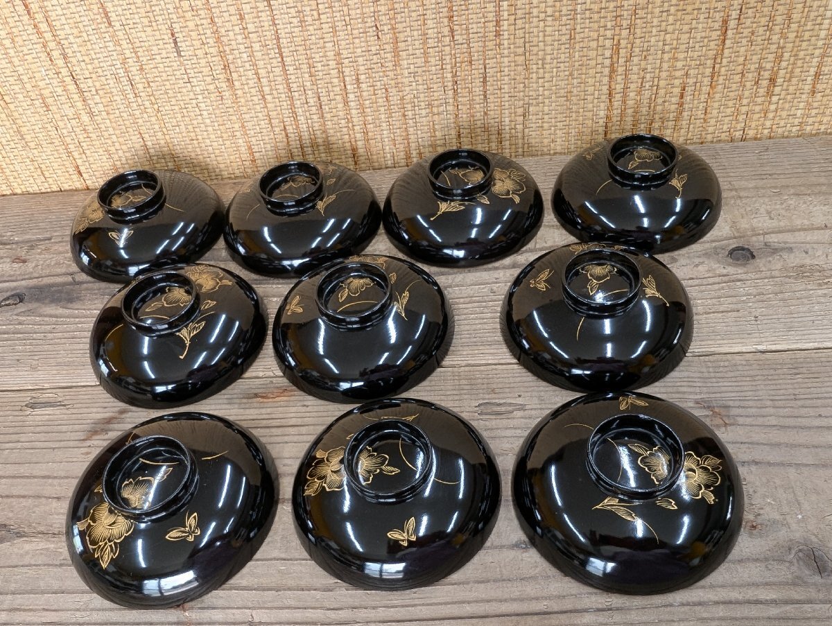 昭和 漆器 汁椀 碗 花 蝶 10客セット