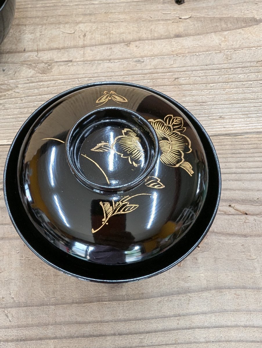 昭和 漆器 汁椀 碗 花 蝶 10客セット