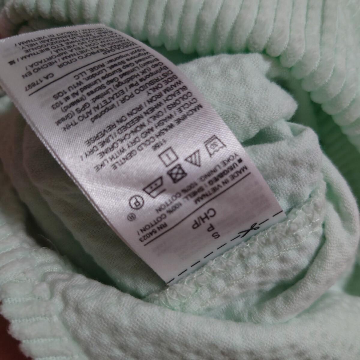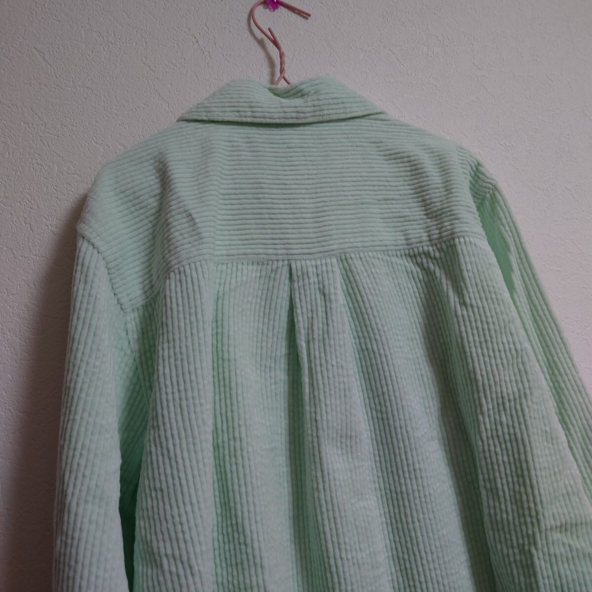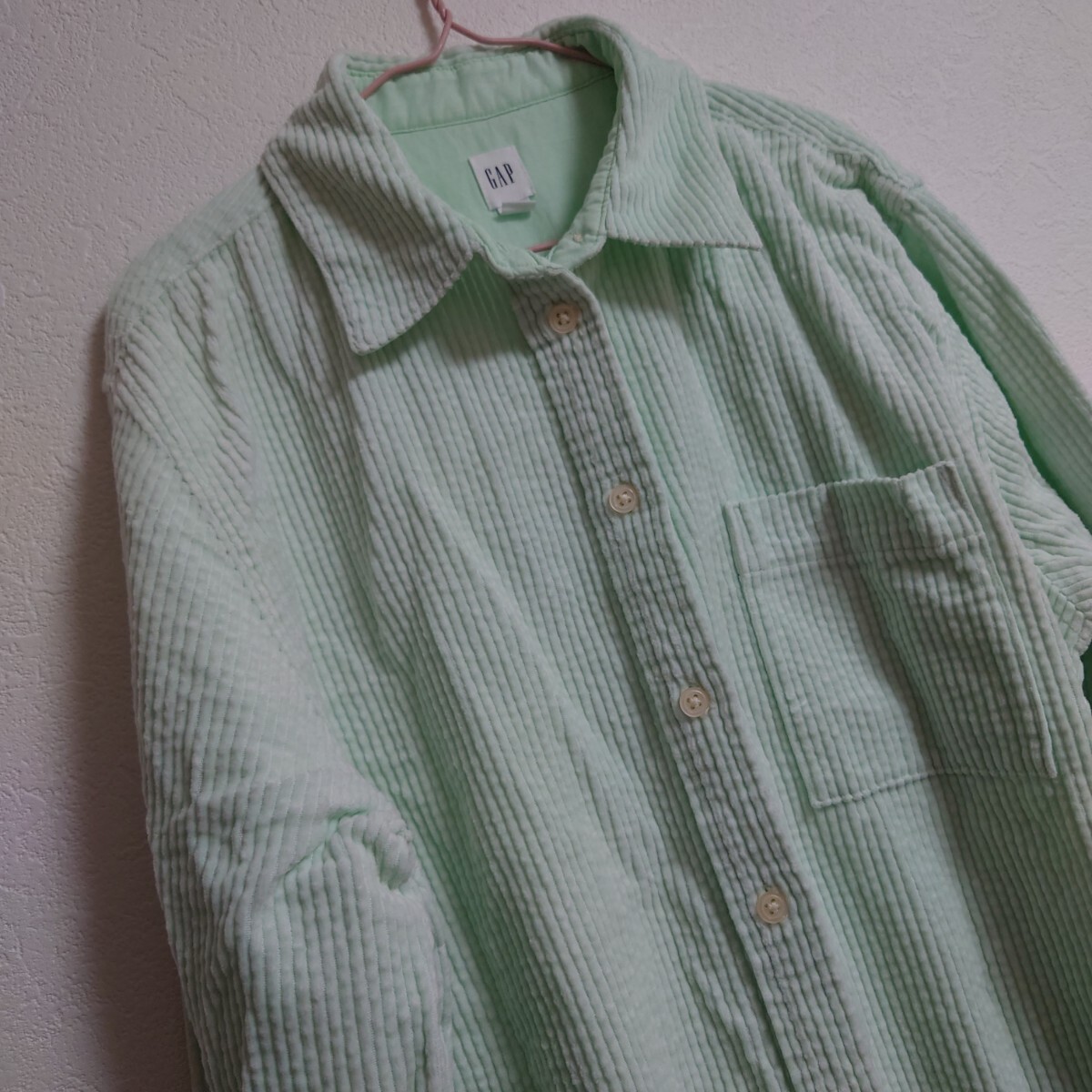 ミントグリーンのコーデュロイ素材で、ポケット付きのGAPの長袖シャツ。