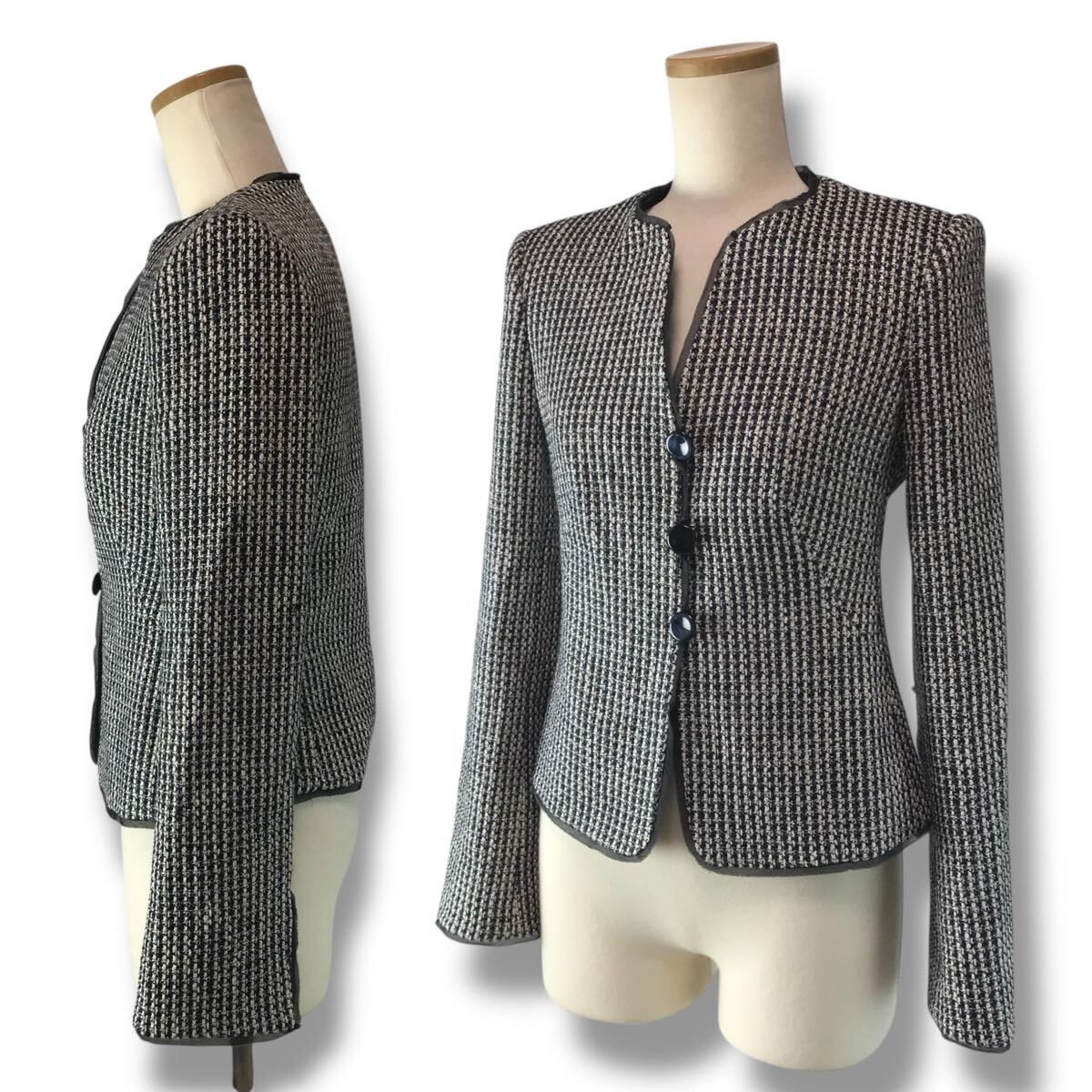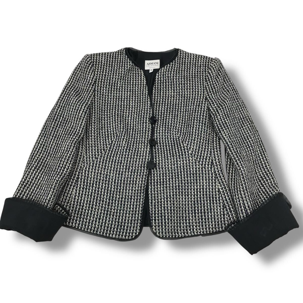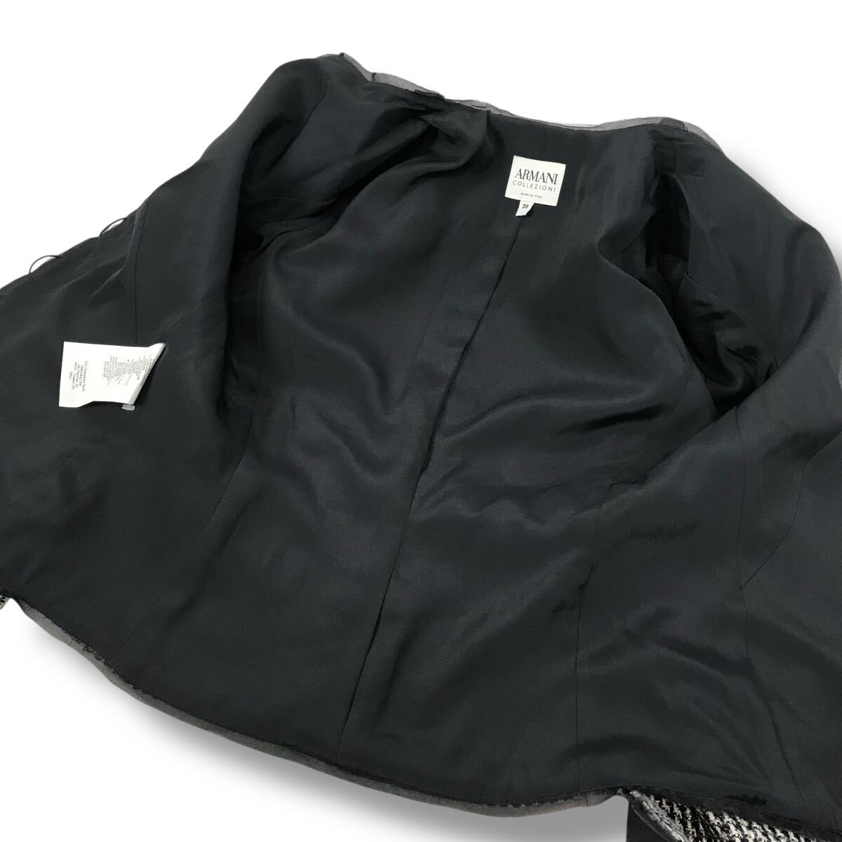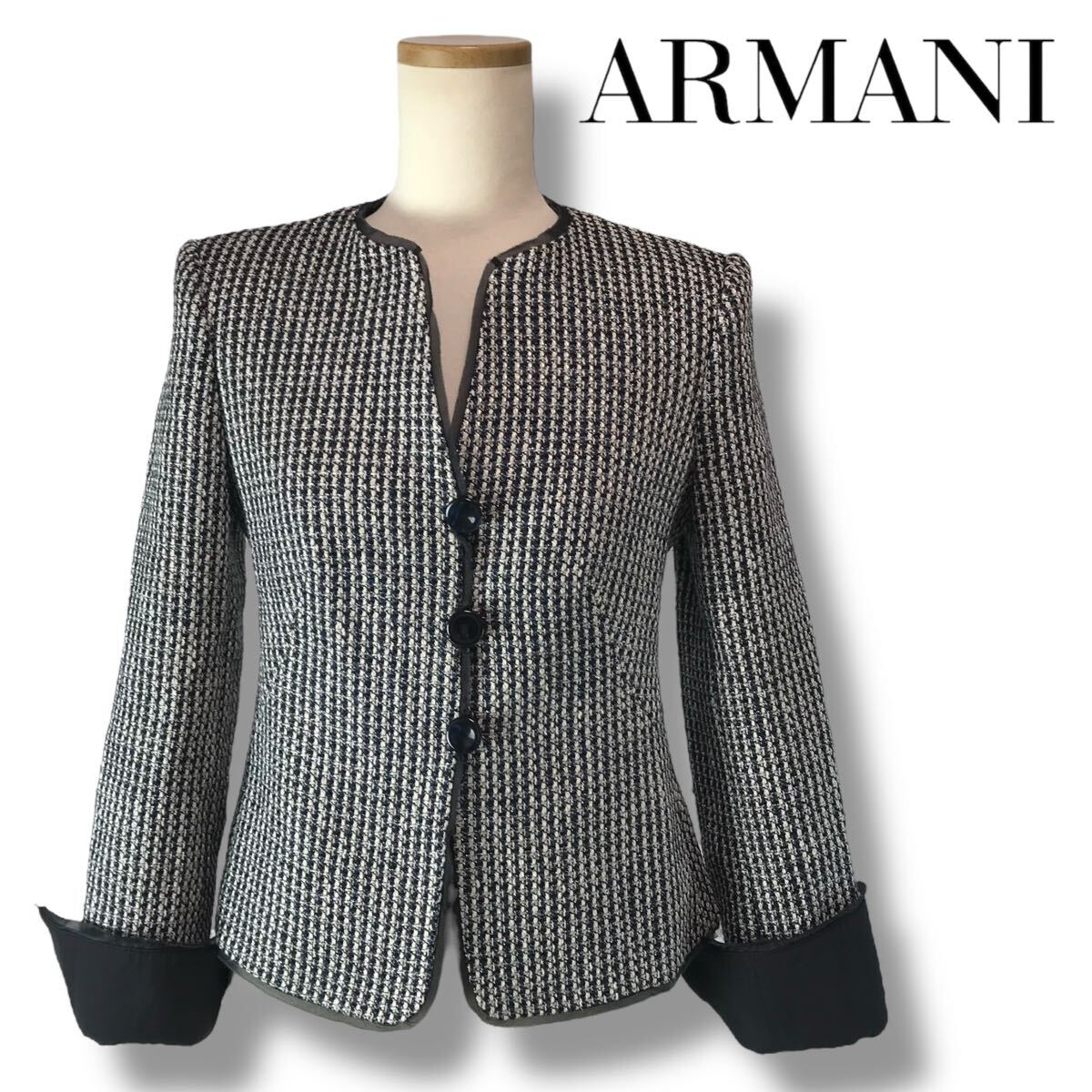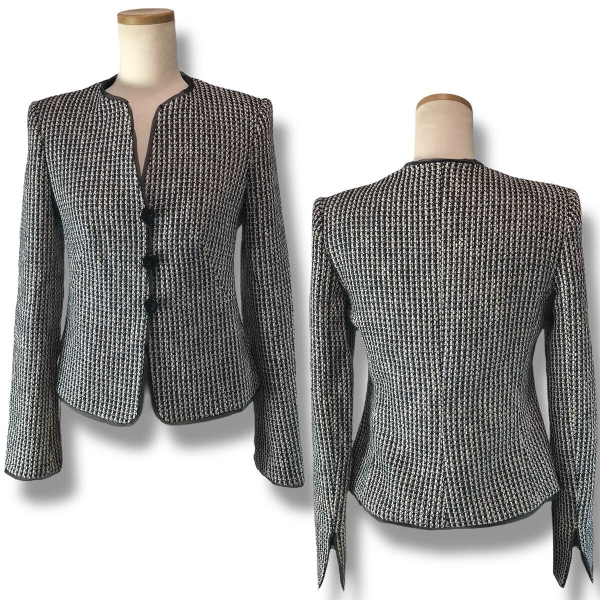 d105 ARMANI COLLEZIONI 2011 アルマーニ ツイード ノーカラー ジャケット ネイビー フォーマル ビジネス アウター 38 正規品 イタリア製