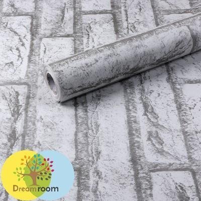 送料込 3Dブリック調 レンガ B139 グレー×グレー10m ストーン 壁紙 北欧 インテリア はがせるシール DIY ウォールペーパー 糊付き