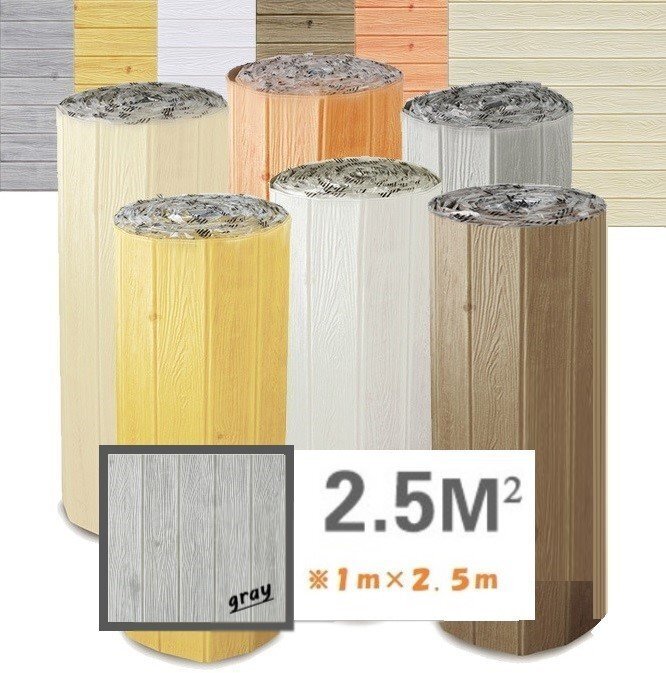 ロール売【1m×250cm】木目 ナチュラルカラー B373 ライトグレー 3D クッション 壁紙 シール 糊付き リメイク 耐水 抗菌 傷防止