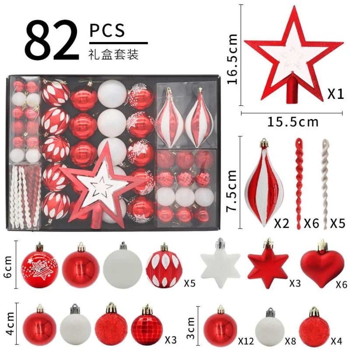 82個セット クリスマス オーナメント 大容量 赤 サンタ スノーマン 飾り 星