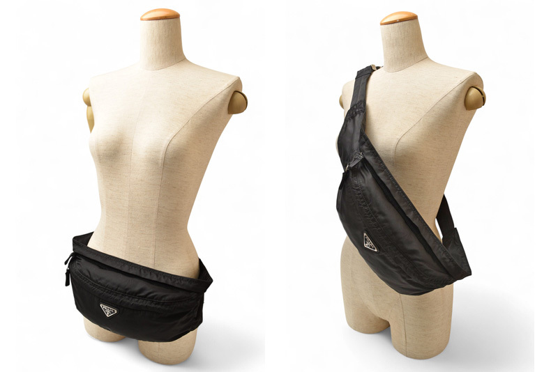 商品説明 | プラダより、軽量で人気のナイロンバッグです。フロントにはPRADAのトライアングルプレートが施され、高級感があります。体のラインにフィットするナイロン素材です。サイズ調節可能で、スタイルに合わせて、お使いいただけます。男女兼用で、アウトドア、旅先でも大活躍しそうです!500mlペットボトル収納可能。 |