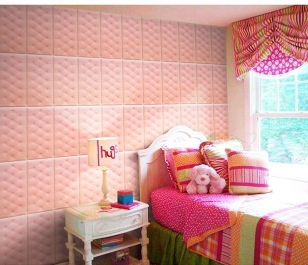 【50枚】極厚2cm高級 3D クッション 壁 シール キルティングレザー調×ピンク 糊付き リメイク 70×77cm 耐水 抗菌 傷防止