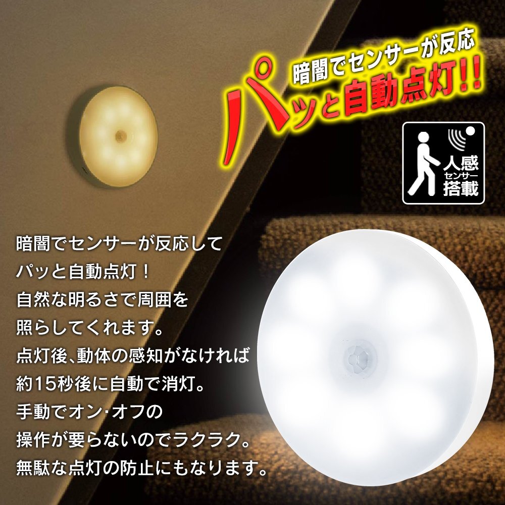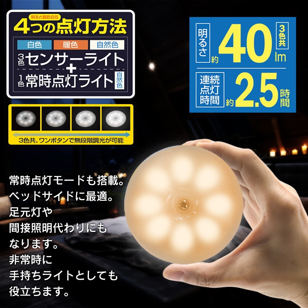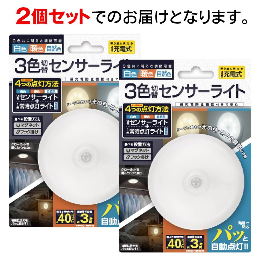 | USB充電式センサーライト 2個 白色/暖色/自然色 | |