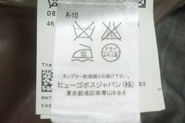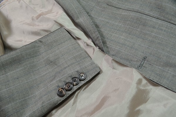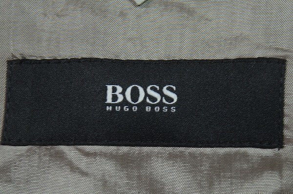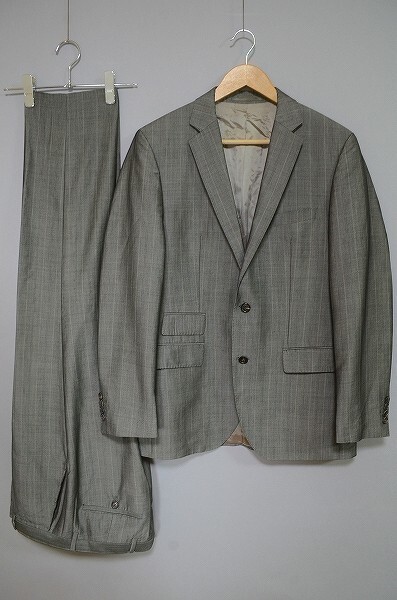A1492/秋冬 総裏 HUGO BOSS ヒューゴボス レーヨン ウール 光沢 ストライプ シングル2Bスーツ ジャケット セットアップ 上下46 灰色/メンズ