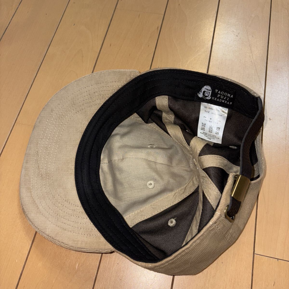細畝のベージュのコーデュロイのキャップです。加賀美健さんデザインのものです。