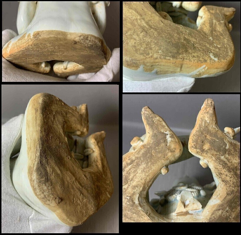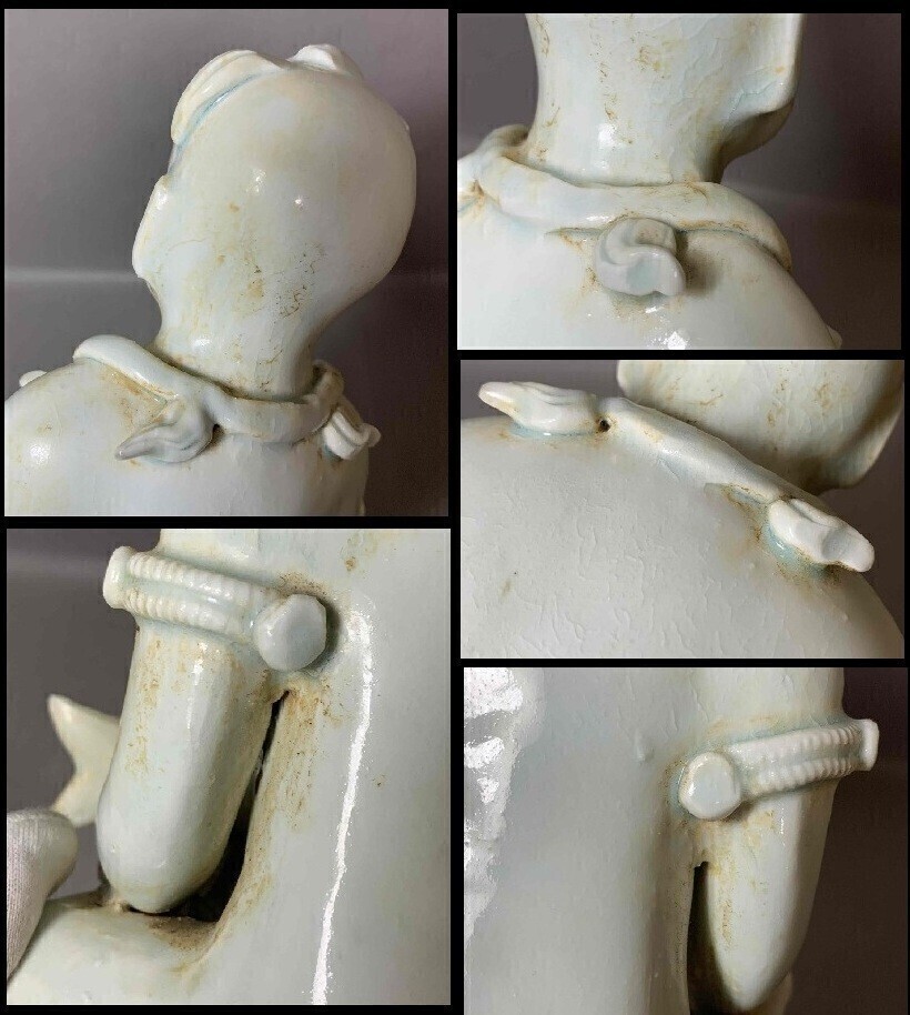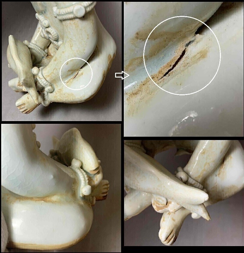 全体に 汚れ、シミ、傷、窯傷あります。 印のところ 大きく窯傷あります。 全体に汚れあり、キジに窯傷などあります。 印や写真以外にも汚れ、傷あります。状態は悪いです。