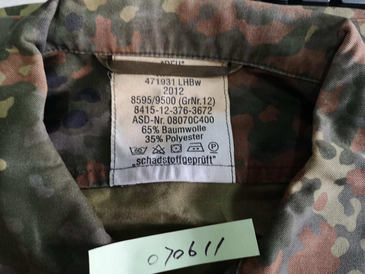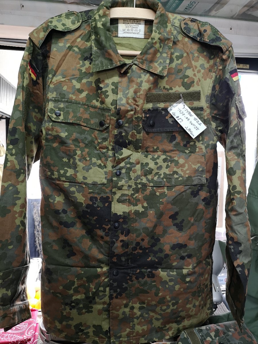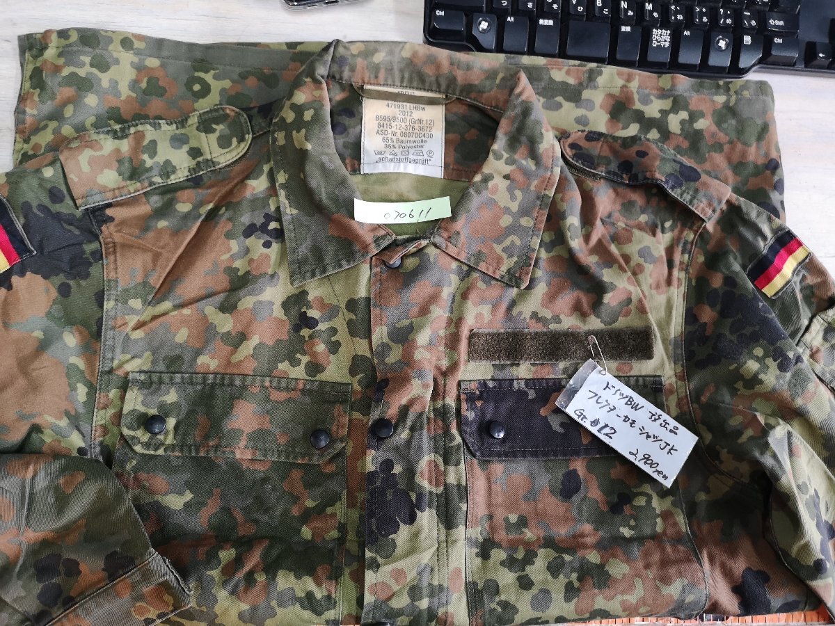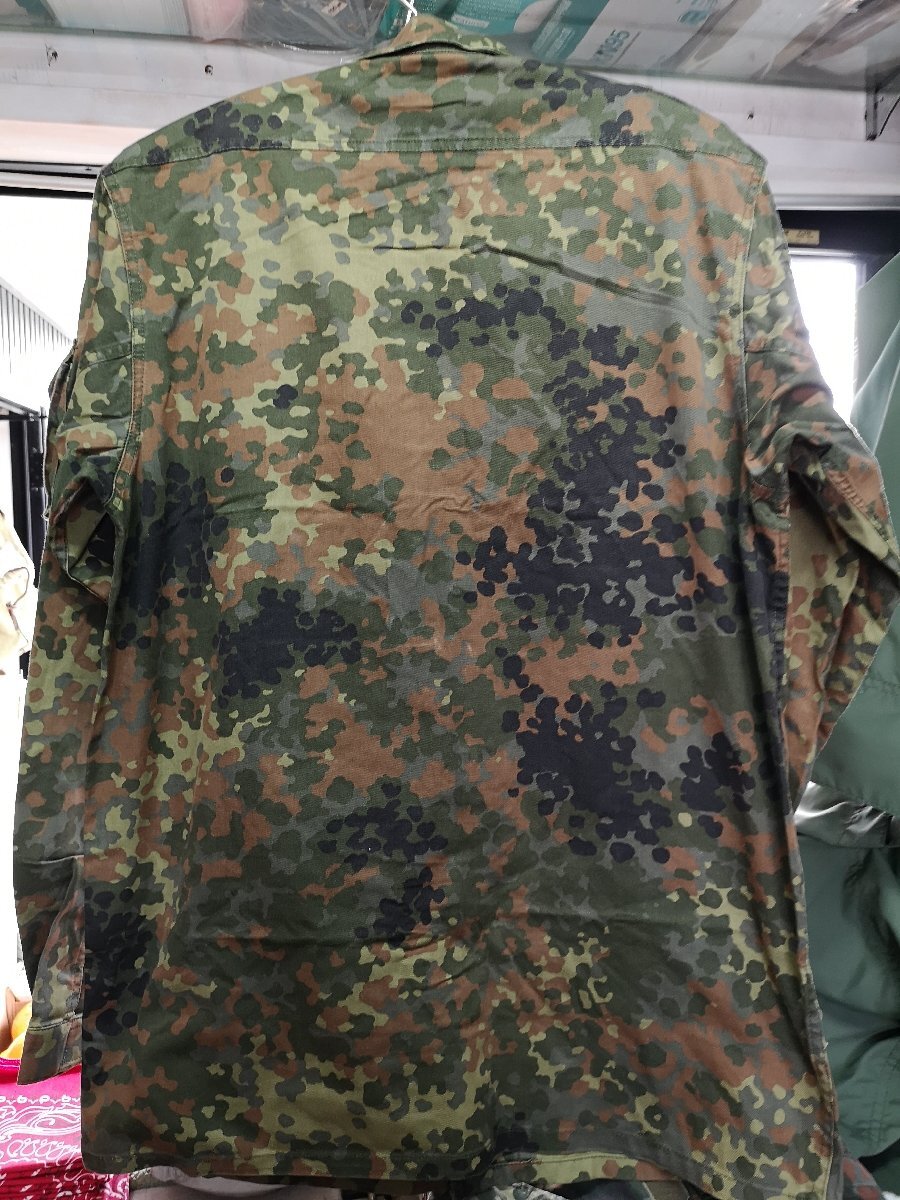 ドイツBW放出のフレクターカモのシャツジャケット、薄手の生地ですがフロントはジッパーとホックの併用で便利です。ユーズドです。 これは表示8595/9500で日本人XLサイズ程度、丈77cm・身幅55cm・肩幅57cm・袖64cm程度になります。 コンディションは全体に適度に色落ちした感じで特に汚れや補修もないです。 沖縄離島を除く全国500円でお送りいたします、落札価格にプラスでお願いいたします。