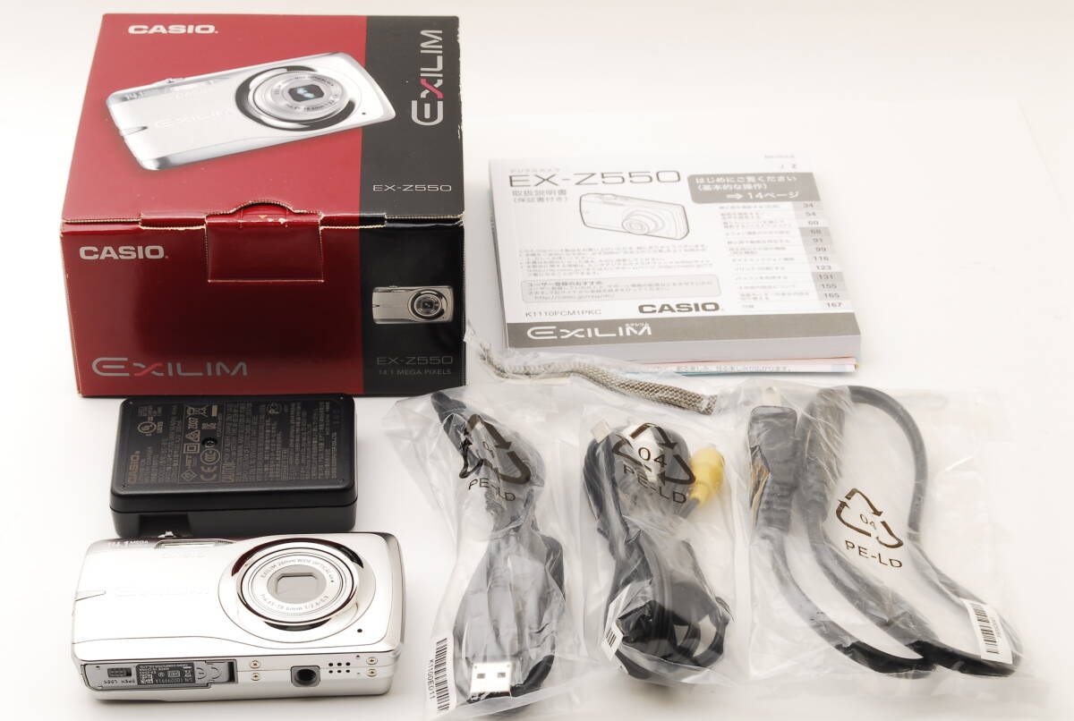 【使用感少ない美品】CASIO EXILIM EX-Z550 シルバー カシオのコンパクトデジタルカメラ コンデジ ★付属品完備★