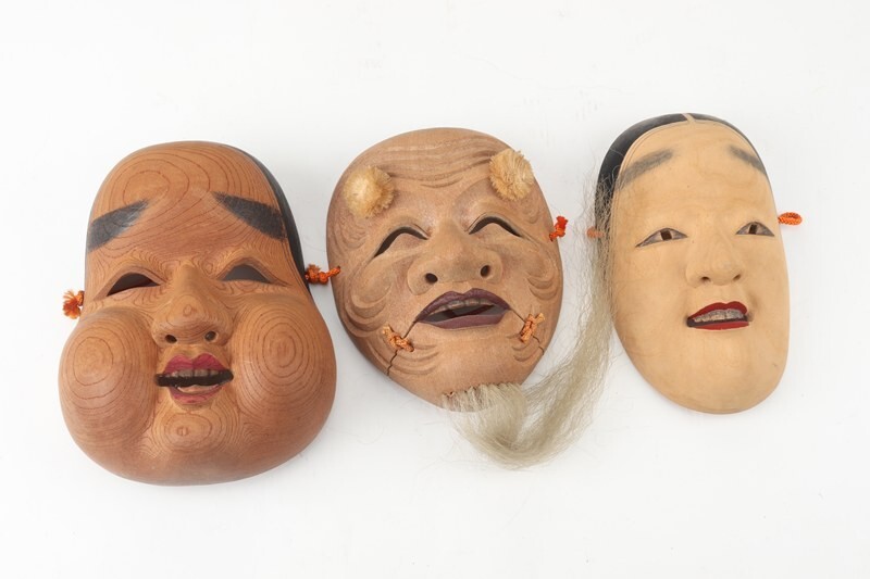 おかめ 高さ 約20㎝ 幅 約16cm 奥行き 約10cm 翁面 高さ 約18㎝ 幅 約15cm 奥行き 約5cm 女面 高さ 約20㎝ 幅 約12cm 奥行き 約8cm |