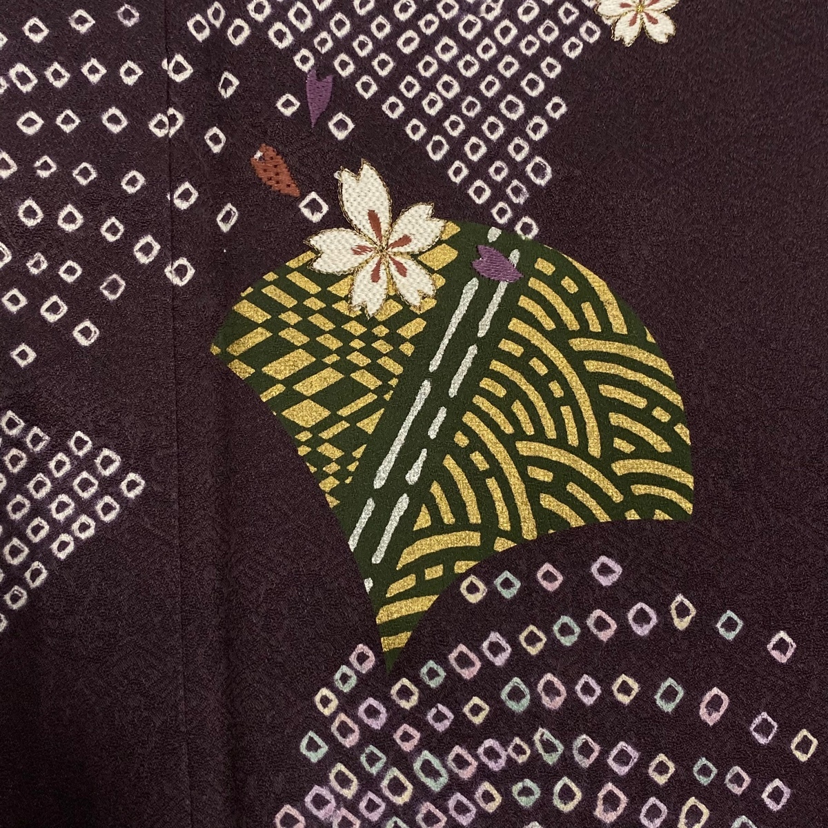 | 付下げ 美品 秀品 桜 青海波 刺繍 絞り 紫 袷 身丈150.5 裄丈64.5 M 正絹 【中古】 |