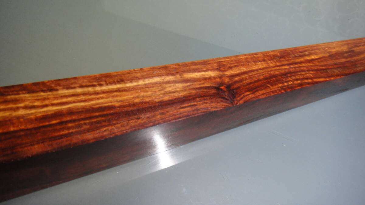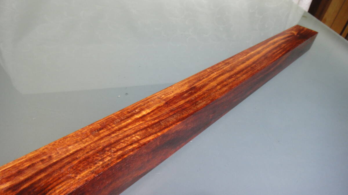 三味線の棹としては不向きかもしれませんが和包丁・洋ナイフの柄、レターナイフ、ペンブランクなど小物製作にはピッタリの材料だと思います。