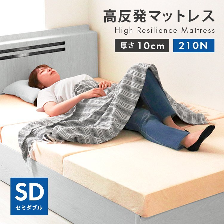 | 厚みたっぷり10cm! 適度な硬さで身体をしっかり支える、三つ折りタイプの高反発マットレスです。 柔らかいマットレスとは違い、身体の沈み込みを軽減した腰に優しい寝心地です。 高反発マットレスのウレタンフォームは弾性が高く、適度な硬さで身体を支えるので、底つき感もなくへたりにくいマットレスです。 寝返りが多い方や仰向けに寝ることが多い方におススメです。 簡単にたためる三つ折りタイプなので、お部屋で立て置きして日当たりのいい場所で部屋干しが可能! 取り外しやすいL字ファスナー付き洗えるカバーが付属しています! 【商品仕様】 カラー:ベージュ サイズ(約):幅120cm×長さ195cm×厚み10cm(セミダブルサイズ) 折り畳み時(約):幅97cm×長さ65cm×厚み30cm 素材:高反発ウレタン 、パイル生地 他 硬さ:210ニュートン ※耐熱仕様ではございませんので、電気毛布との併用はおやめください。 (マットレス シングル セミダブル ダブル 高反発 低反発 高反発マットレス 低反発マットレス シングル 高反発マット 低反発マット マット ベットマット ベッド 敷き布団 洗える カバー 寝具 人気 おすすめ ) |