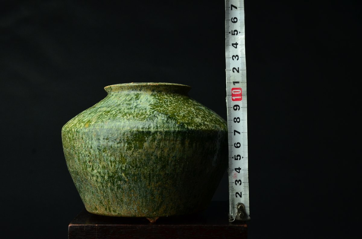 【YB】中国 漢時代(後漢 1世紀/約2000年前) 緑釉壺 年代保証