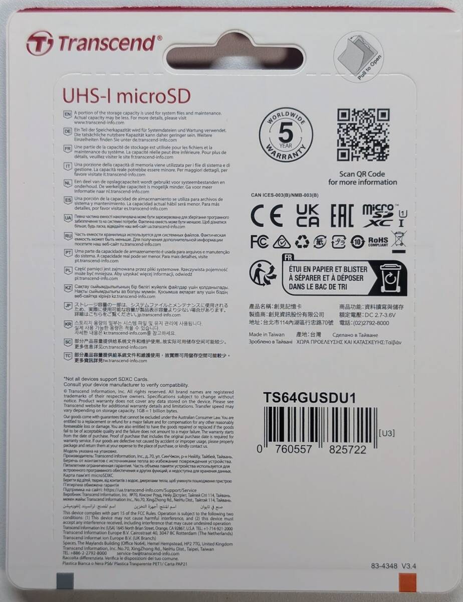 K トランセンド MicroSDXC U1 64GB TS64GUSDU1(TS64GUSDU1) 新品未開封品です