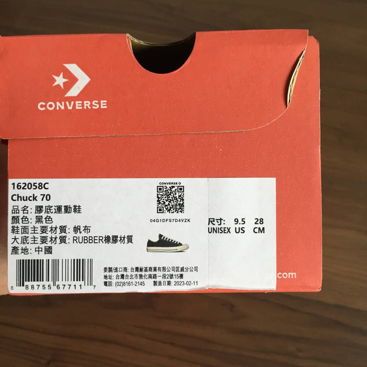 ・台湾で販売されるCT70の靴箱のシールラベルに製造番号の記載はありません。