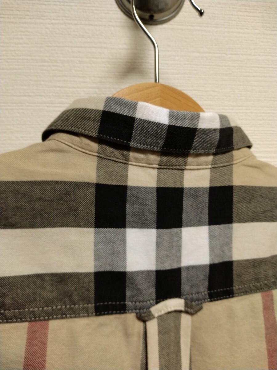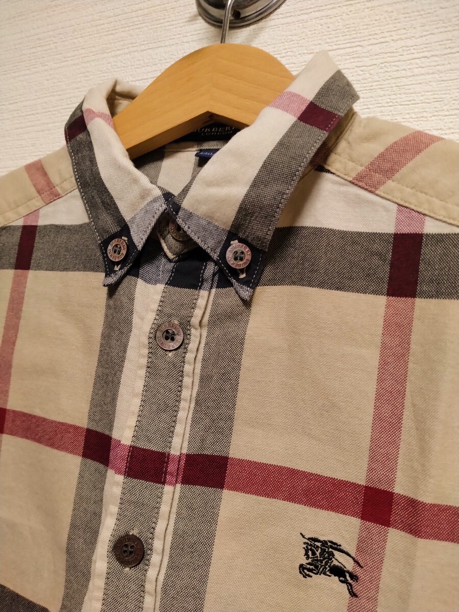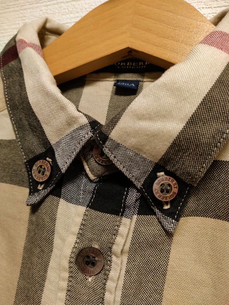多少の誤差はご容赦下さい。全てのボタンにはBURBERRYの刻印があり、左胸には刺繍のホースマークがあります。