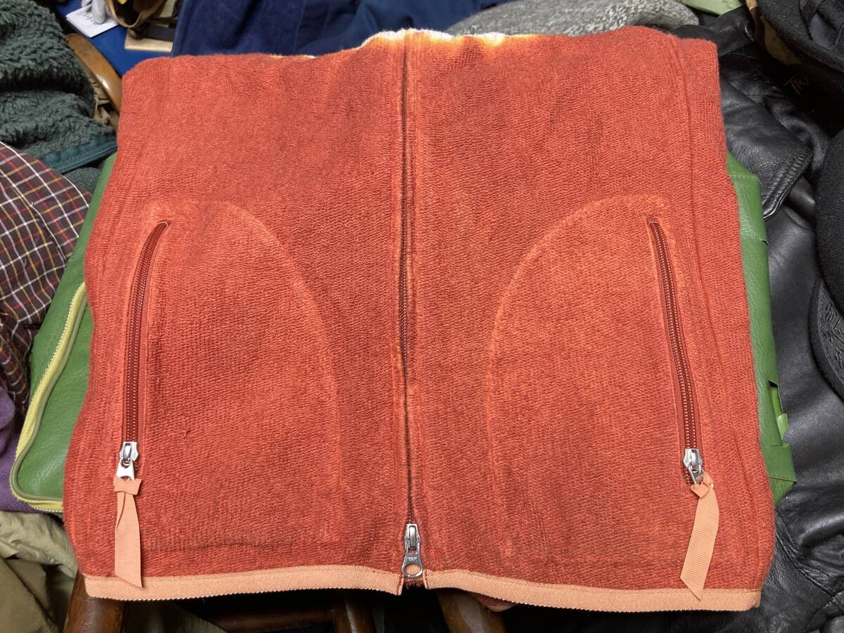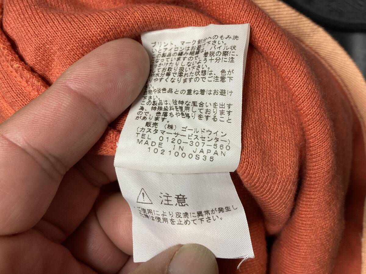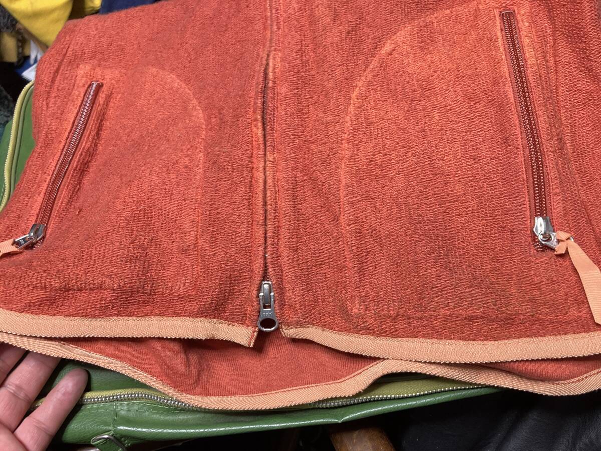 肩口、裾、ポケットのテープのトリム部にはライトオレンジのの生地が使われております。