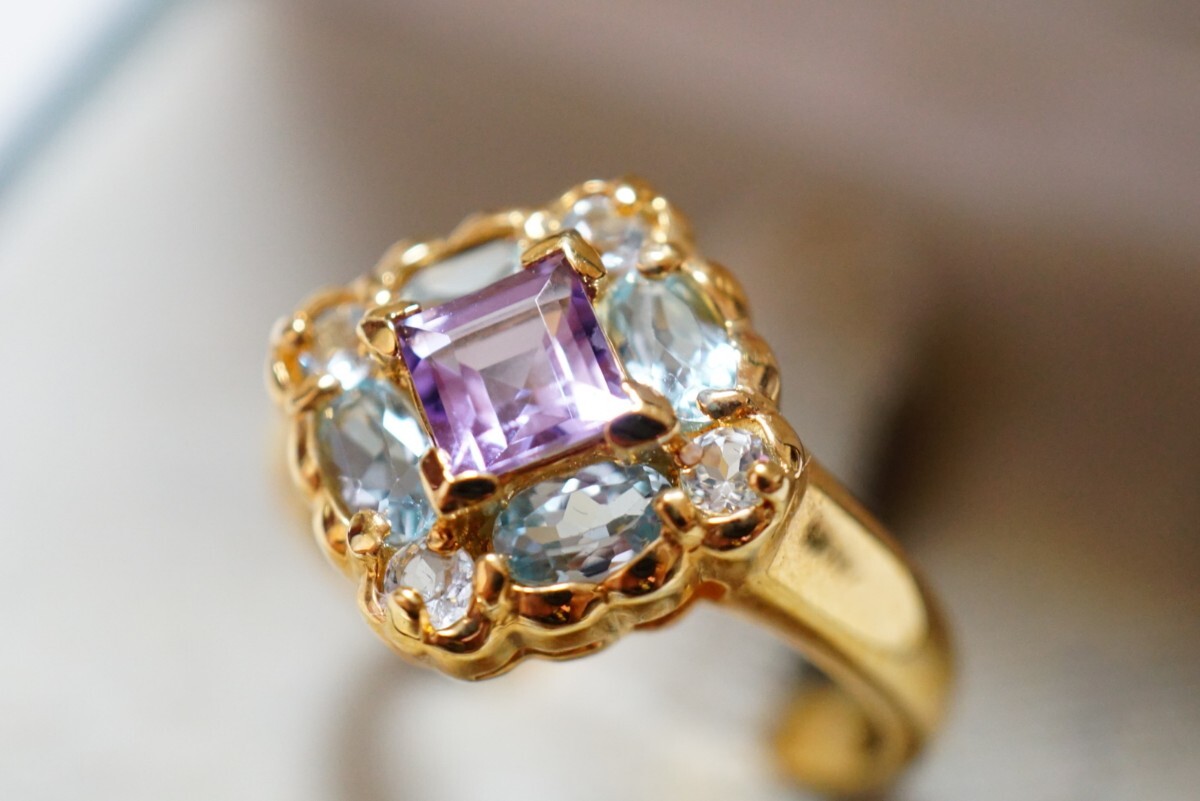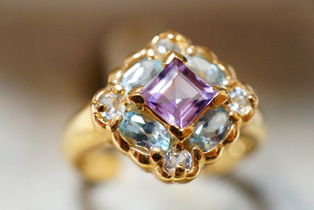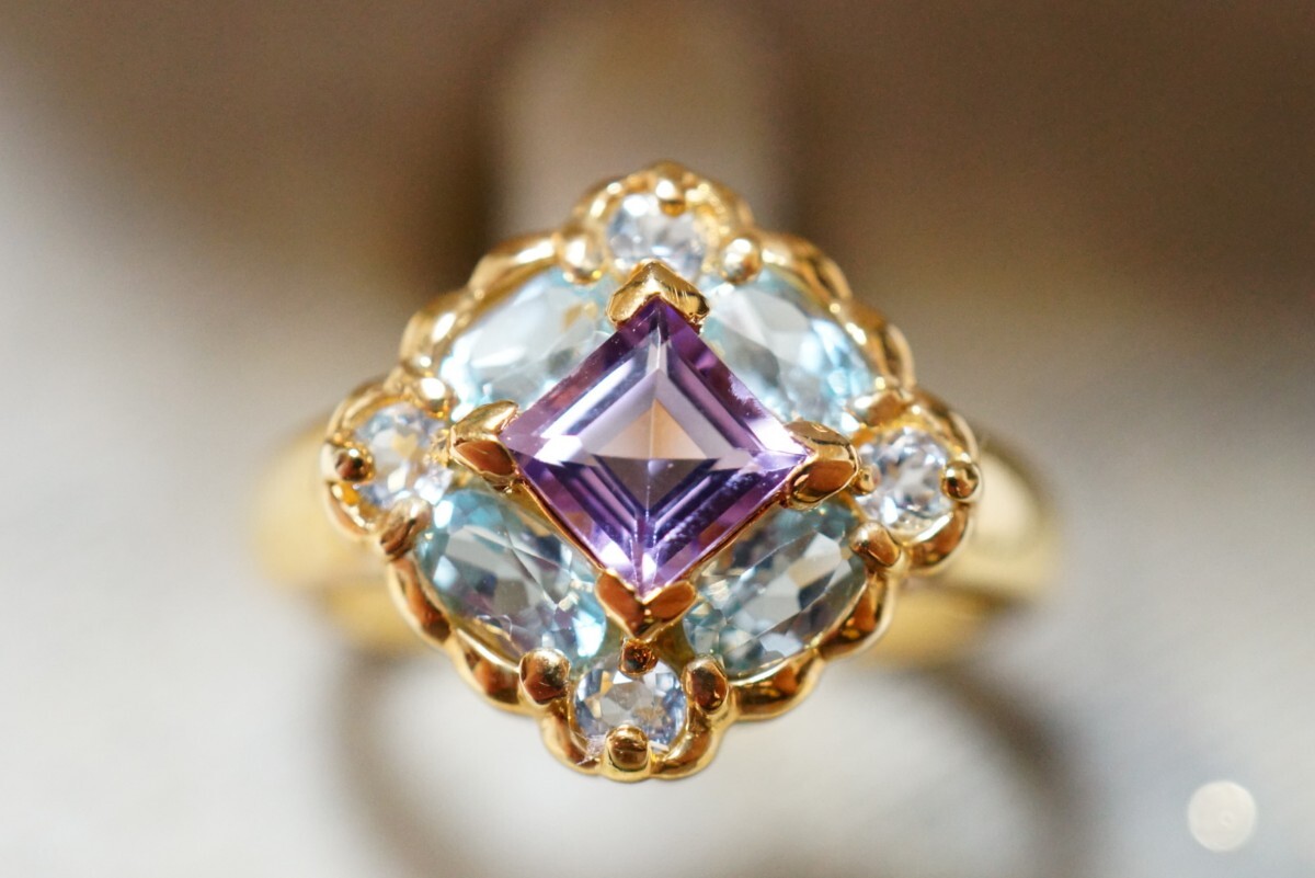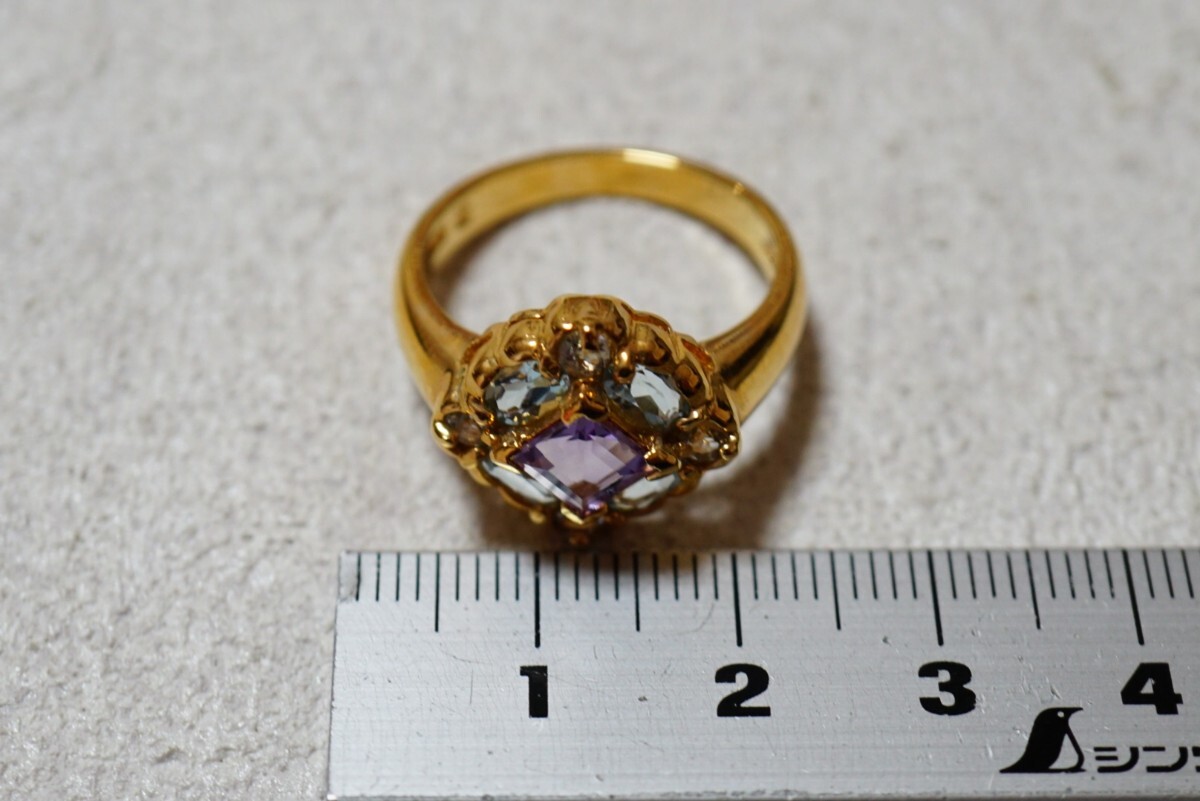 878 ブルートパーズ アメジスト ゴールドカラー リング 指輪 ヴィンテージ アクセサリー SILVER 925刻印 色石 宝石 カラーストーン 装飾品