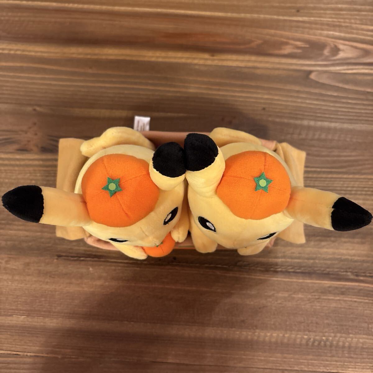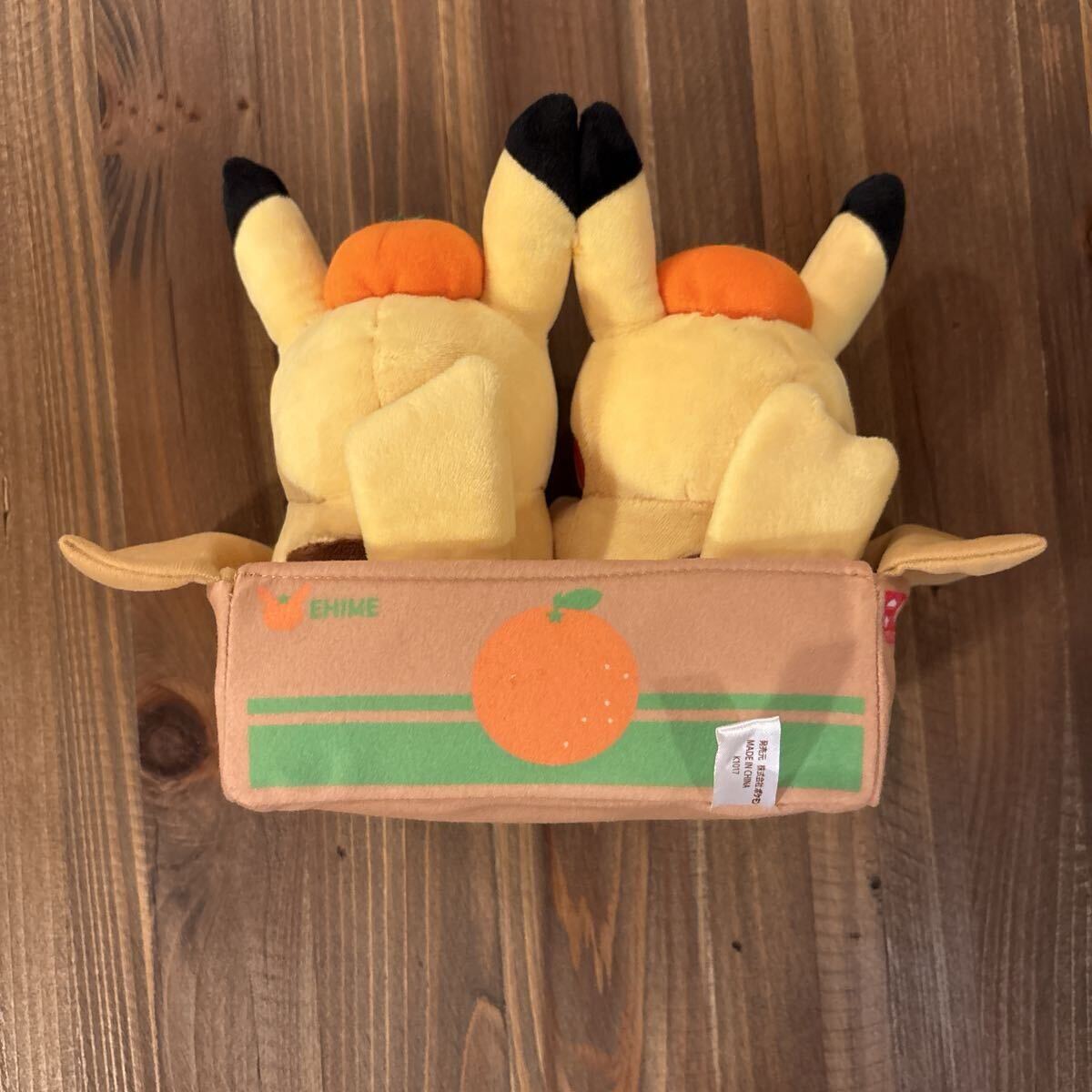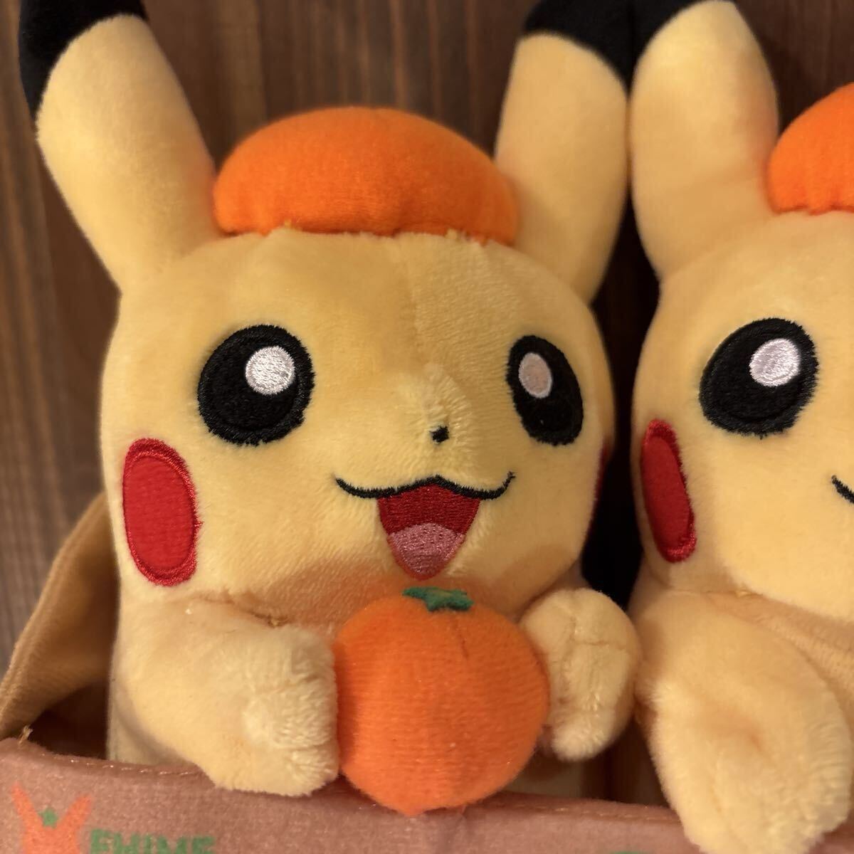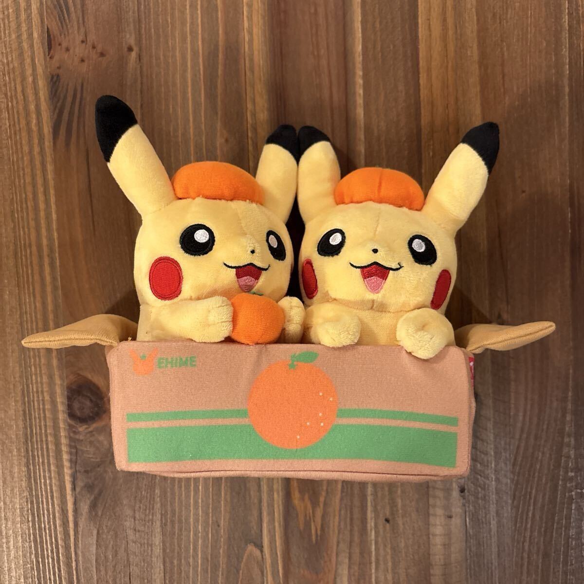 みかん箱に入ったピカチュウのぬいぐるみ2体セットです。