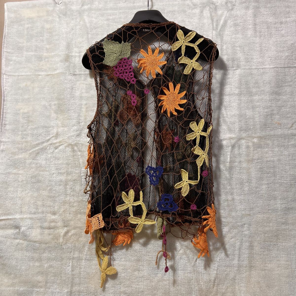 商品説明:C3071 nonnon dorl ノンノンドール ノースリーブボレロ ブラウン地 マルチカラー モチーフ編み 品質タグカット ユーズド 状態画像にて 現状にて