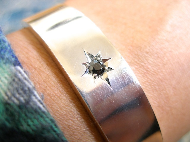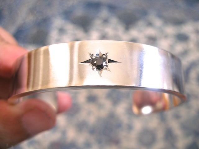 仁尾彫金『一つ星ブラックダイヤ平打バングル』ハンドメイド118b