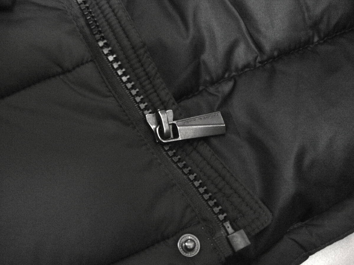 ■フロント部分はファスナーとスナップを配して生地が重なるようにしてこちらも防寒機能性を高めています