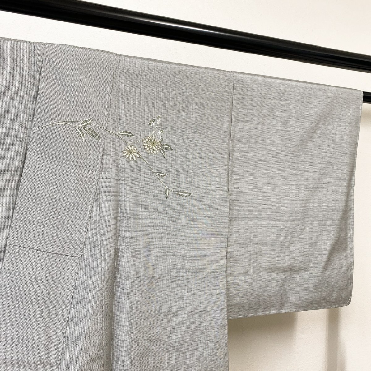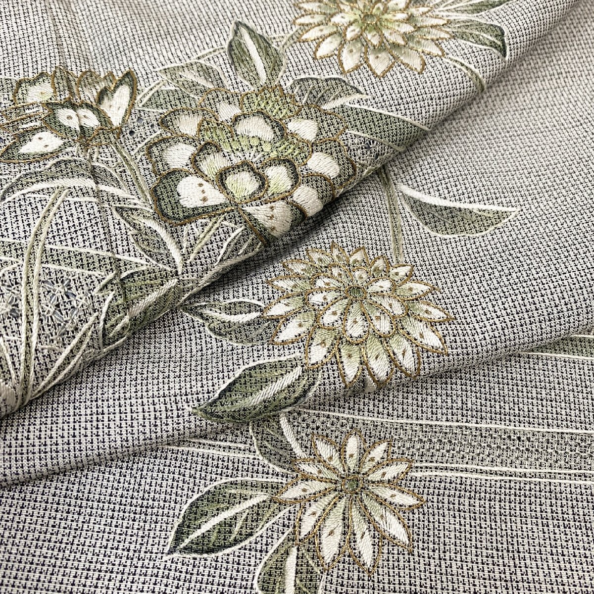 品のある花が描かれた総刺繍の紬訪問着でございます。