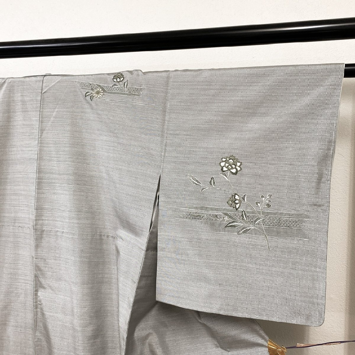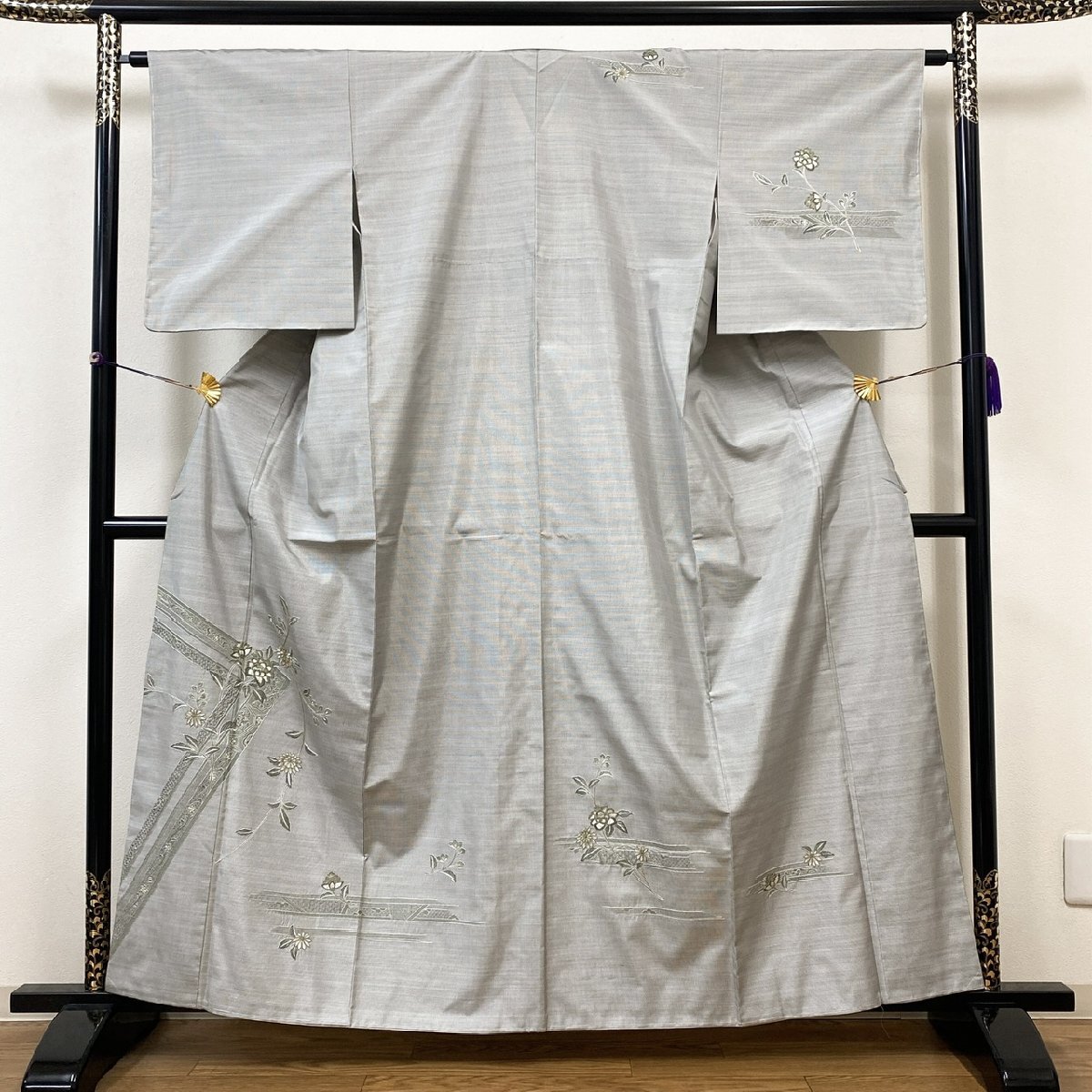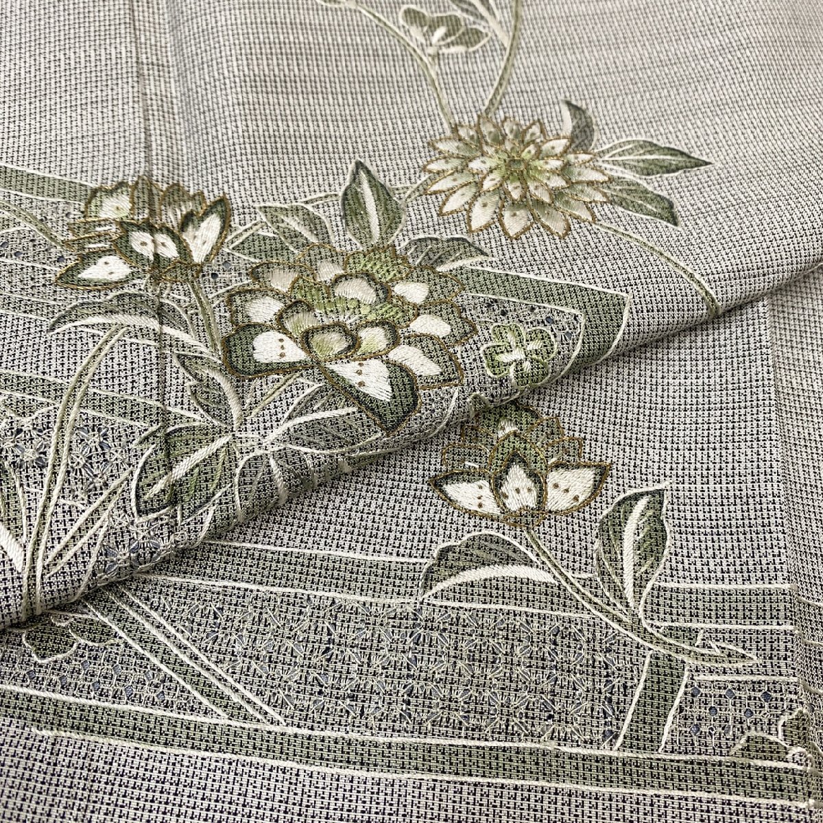 着物月花 三大総刺繍 相良刺繍 仙頭刺繍 蘇州刺繍 品のある花 紬訪問着 未使用品 正絹 金糸 ki6131