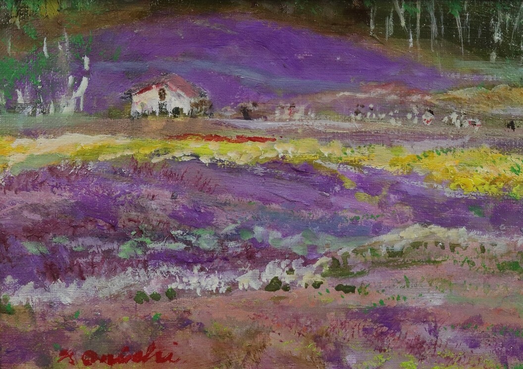11143■【真作】大西生余子 「中富良野 ファーム富田」 キャンバス 油彩 二紀会会員 大阪の人 額装