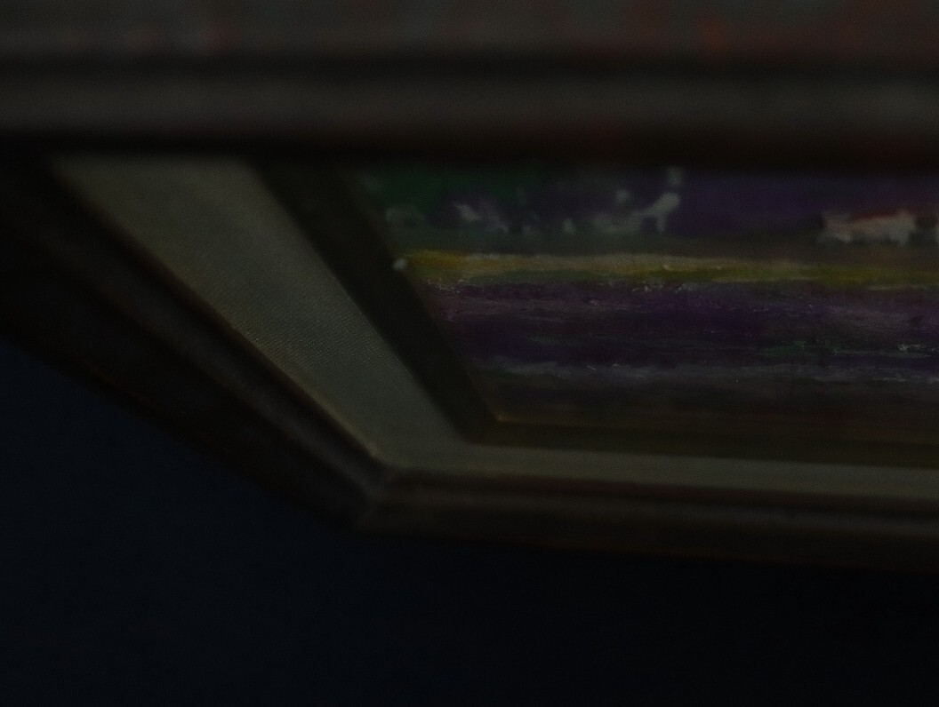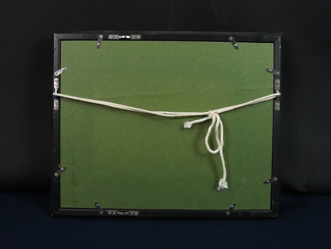 【状態】:本紙の状態は良好です。額に多数キズあります。キャンバス裏にサインあり。ガラス板です。