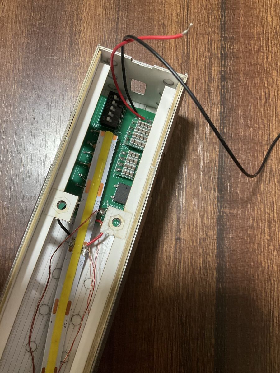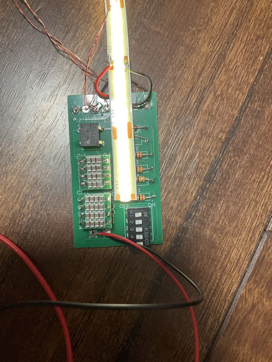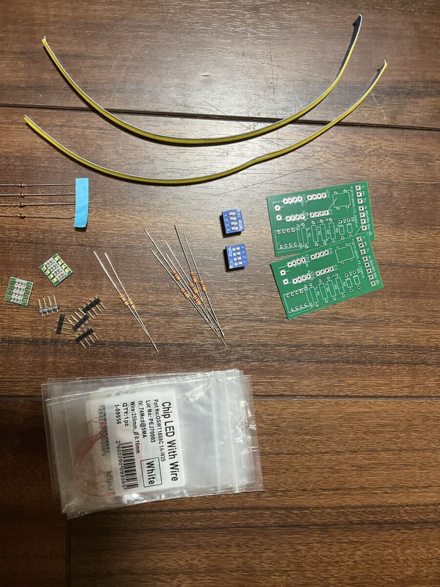 hoゲージ車両のヘッドライト、テールライト、行き先方向幕、室内灯を点灯させることができ、コンデンサアレイによって安定した点灯をお楽しみいただけます。基盤はプリント基盤によって簡単に配線できます。写真のように屋根裏に組み込むことにより、完全に室内の死角に隠すことができます。またdipスイッチによりそれぞれのライトの点灯非点灯を選択できます。チップLEDは赤4つ、電球色4つ、白色2つです。部品付き。