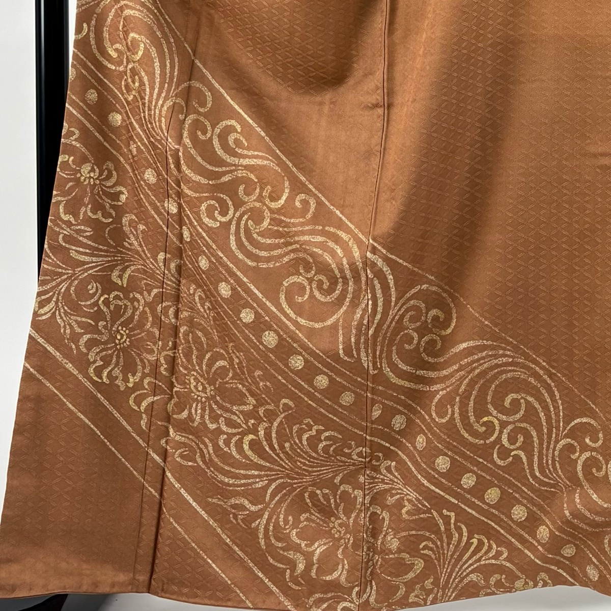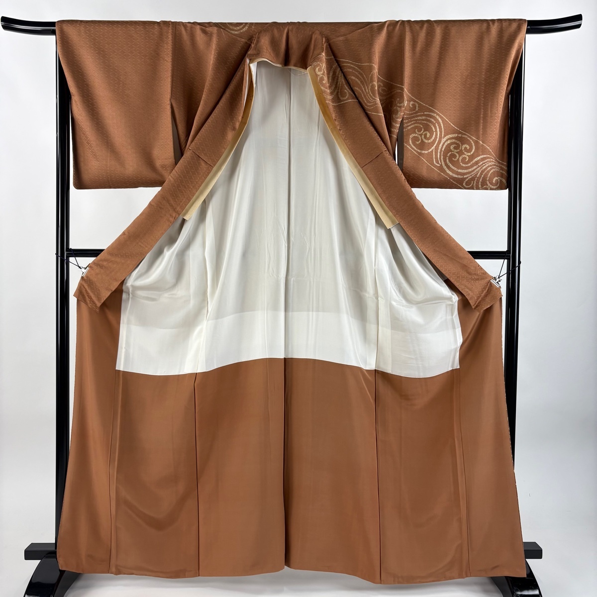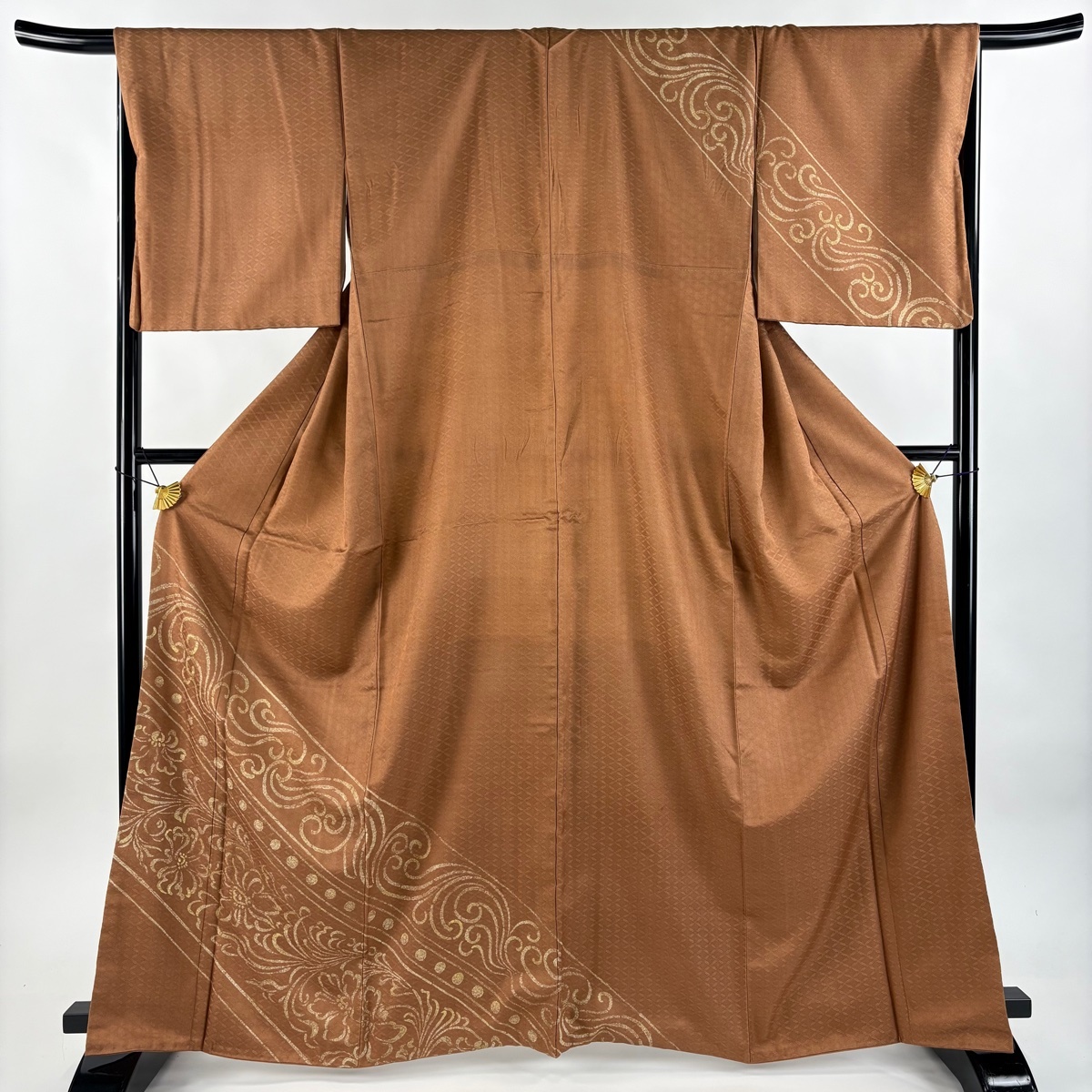 | 訪問着 美品 秀品 草花 幾何学 金銀彩 茶色 袷 身丈164 裄丈67.5 L 正絹 【中古】 |