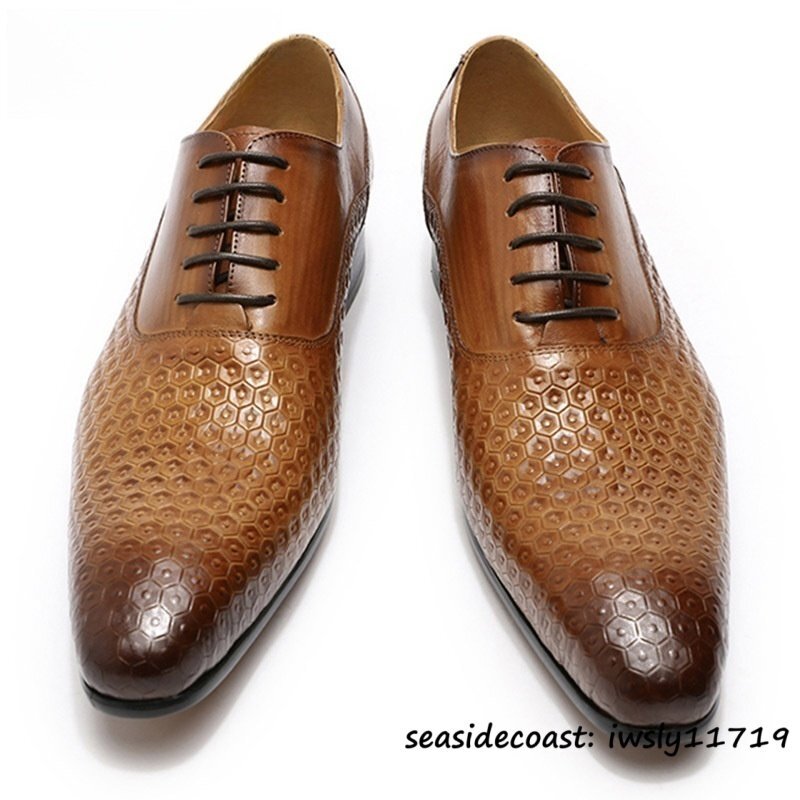 定価9万◆極美品 ビジネスシューズ 本革 レザーシューズ メンズ 職人手作り 高級牛革 新品 紳士靴 革靴 宴会 フォーマル ブラウン 25.0cm