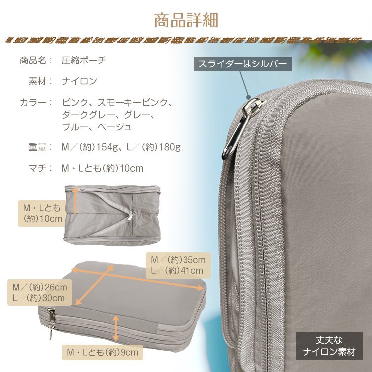 送料無料 収納ポーチ トラベル 圧縮 ファスナー バッグ トランク 旅行 収納 衣替え レディース メンズ 衣類 パッキング 仕切り sg131b