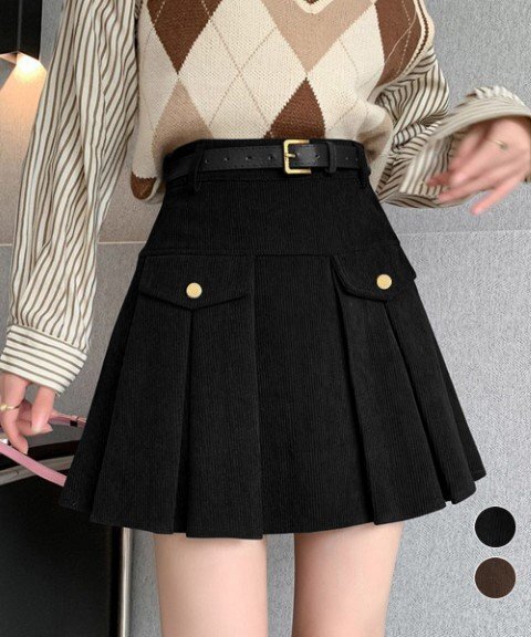 温かみのあるコーデュロイ素材を使用したプリーツスカートです。