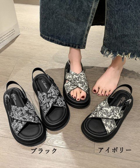 フラワープリント クロスサンダル レディース 歩きやすいコンフォートサンダル 疲れにくい おしゃれ 原宿系夏靴 シューズ