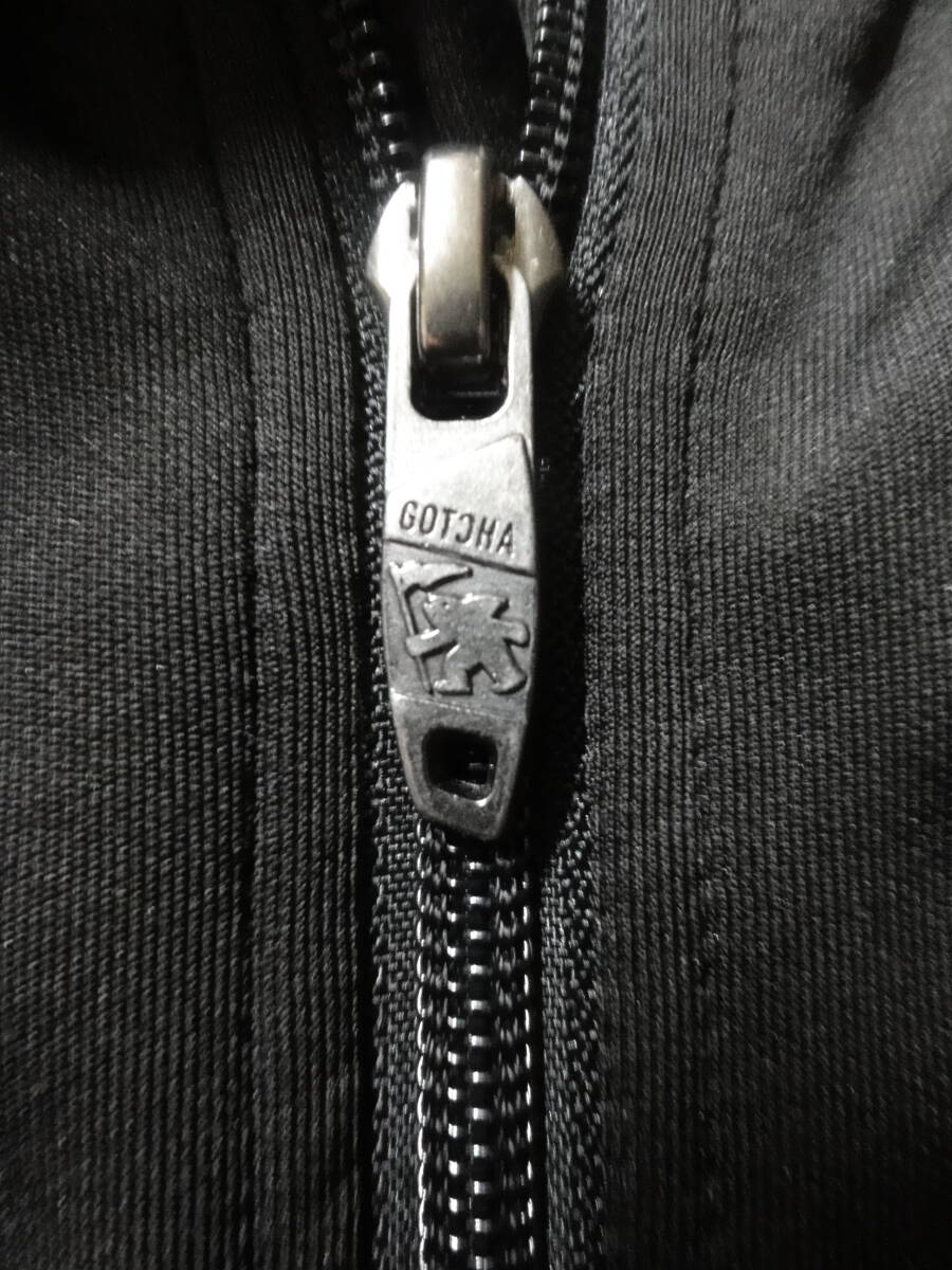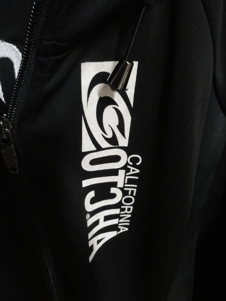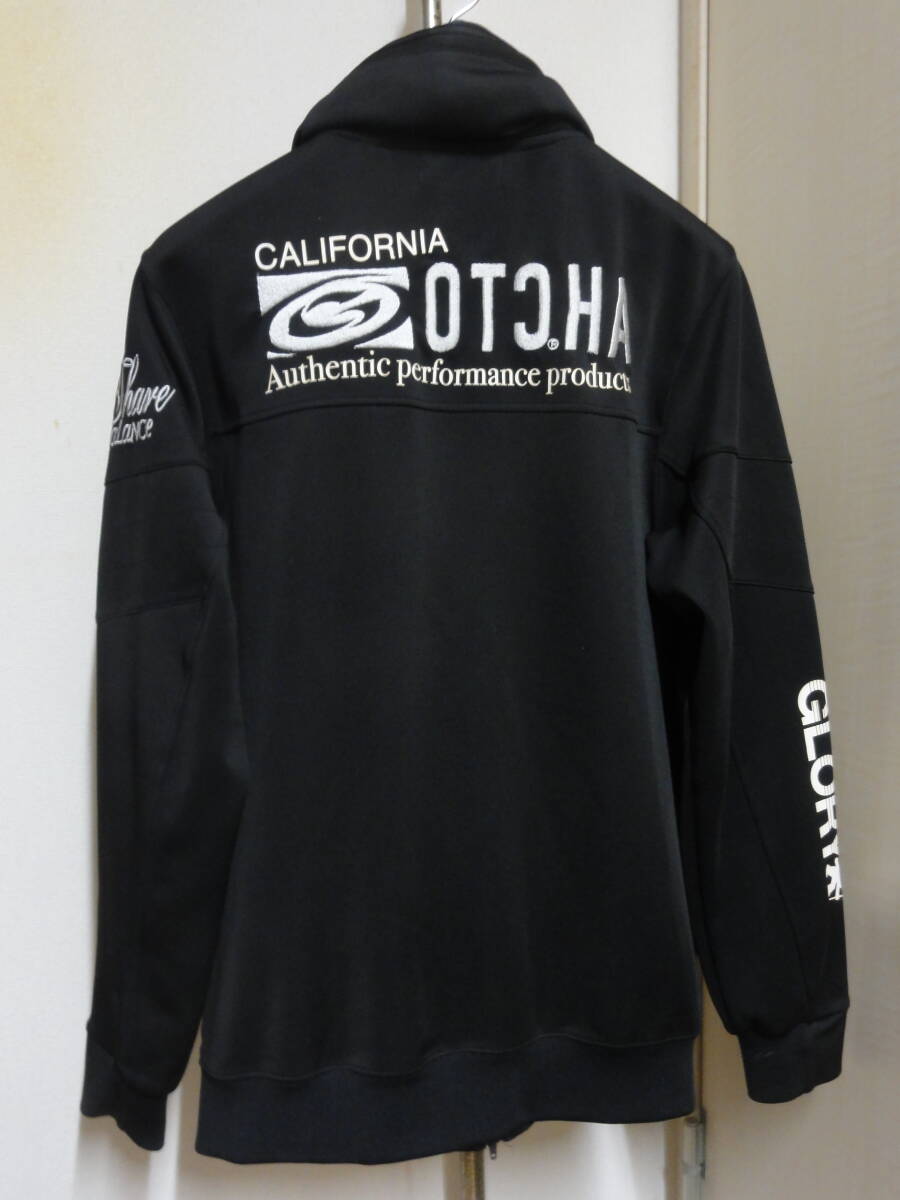 格安特大(XL・胸囲116cm位)・GOTCHA GOLF(ガッチャ)・黒系地・全面(両面+両袖)刺繍&プリント&収納フード付きトラックジャケット系ブルゾン